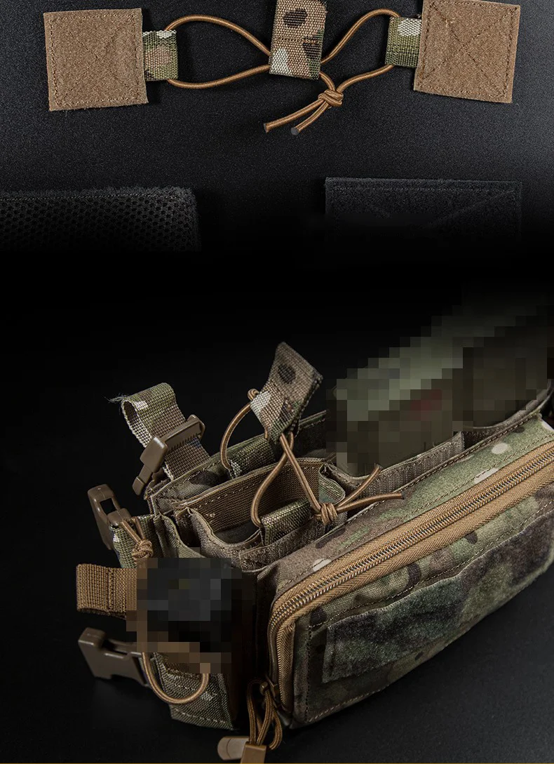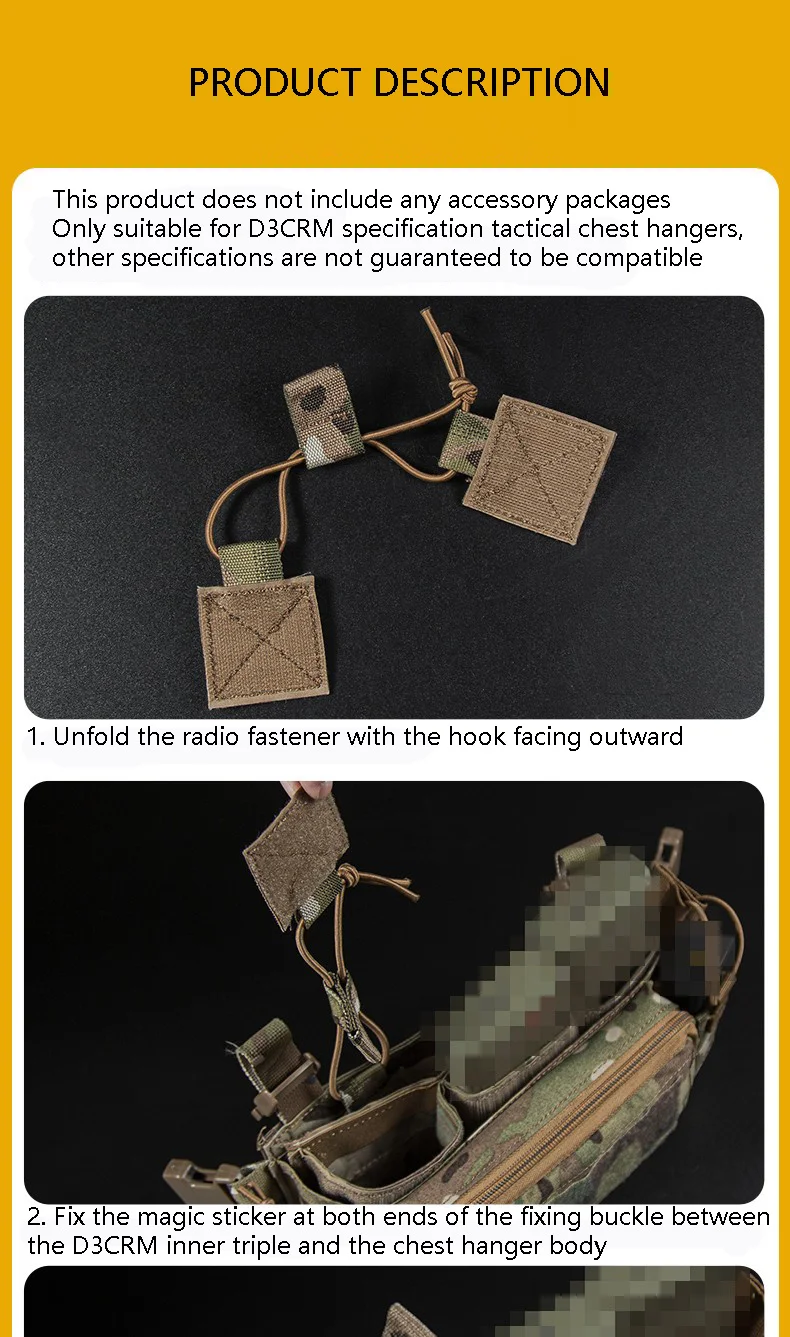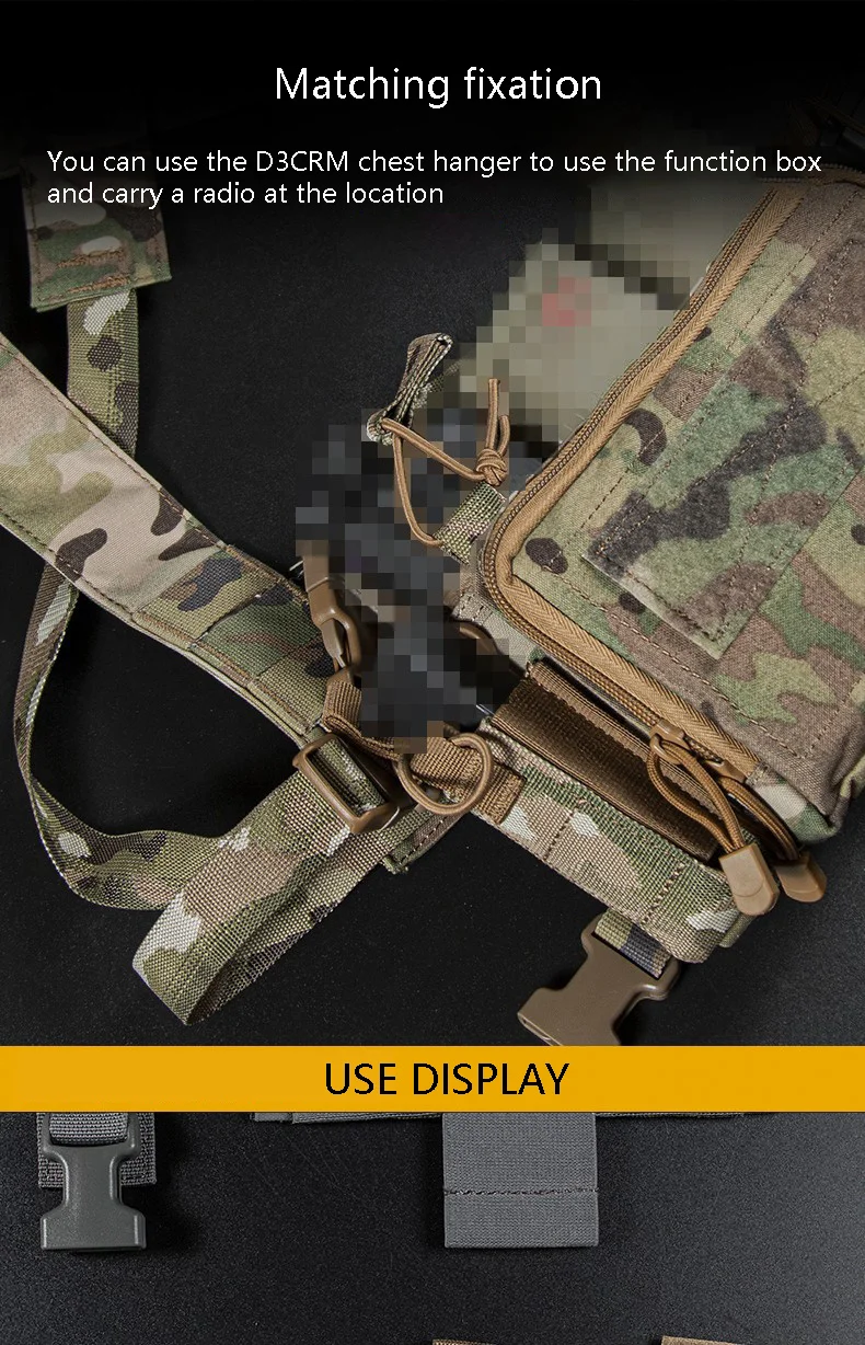 Colocación fija: puede utilizar la plataforma torácica D3CRM para llevar una radio en la posición de la bolsa del cargador.