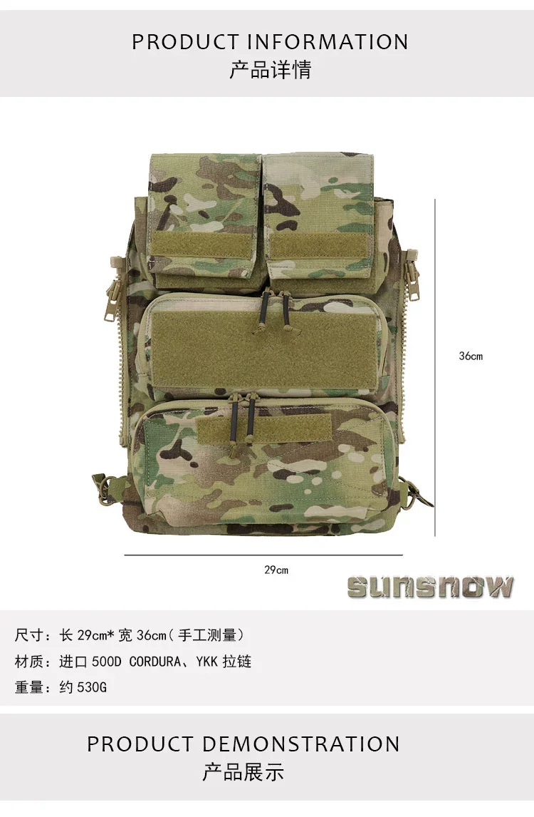 SUNSNOW, nuevo Panel táctico con cremallera, Panel trasero con cremallera, bolsa de almacenamiento para chaleco JPC 2,0 AVS