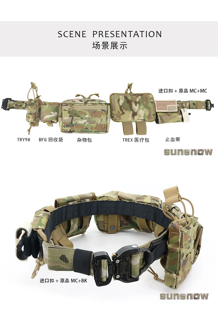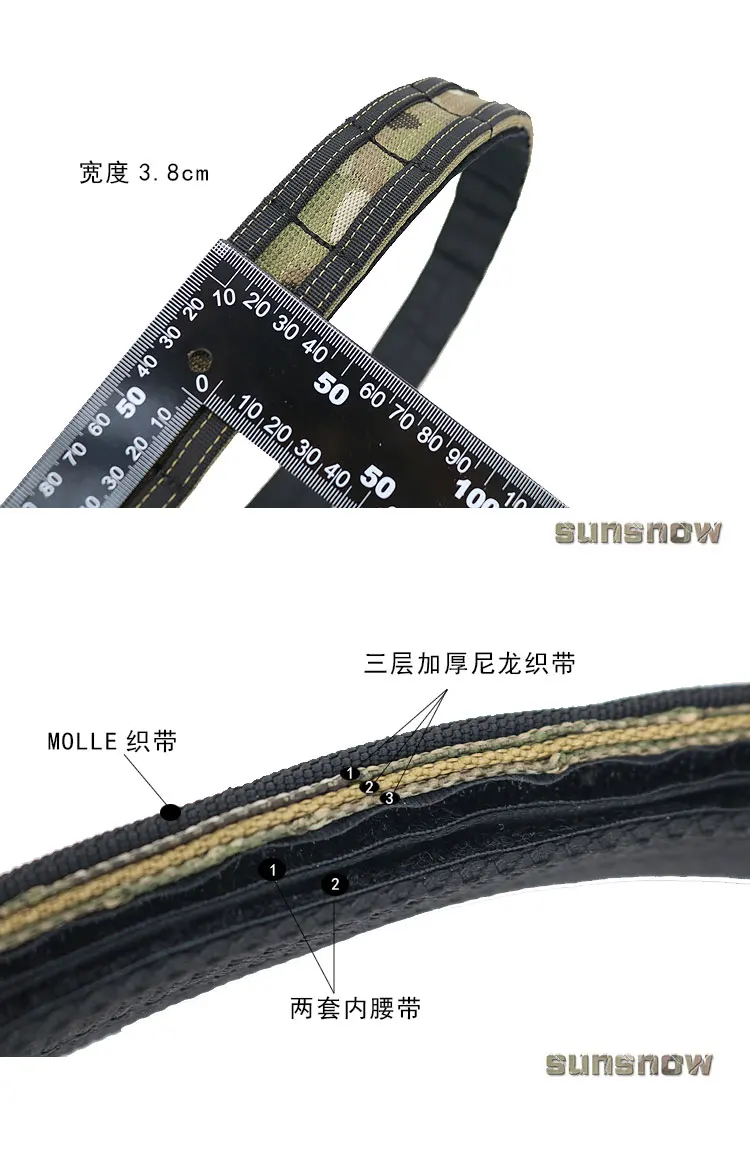 SUNSNOW-cinturón táctico con hebilla de serpiente de Metal, cinturón interior y exterior de nailon grueso de tres capas, 38MM
