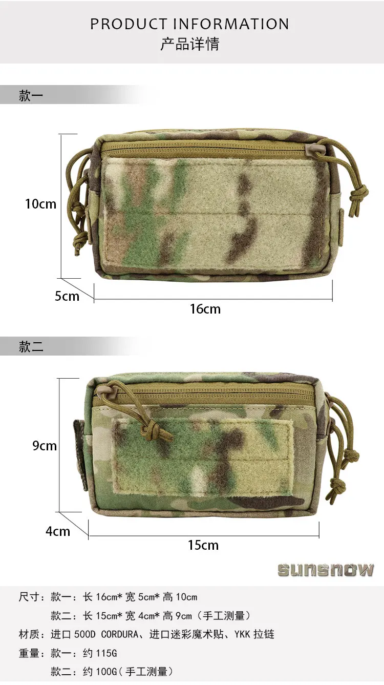 Material: 500D CORDURA, Velcro de camuflaje, cremallera YKK