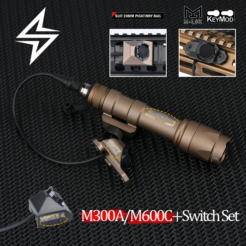 SureFir-linterna táctica de caza M300A M600C, luz de explorador con interruptor de presión ModButton, juego de interruptor de botón caliente compatible con riel MLOK