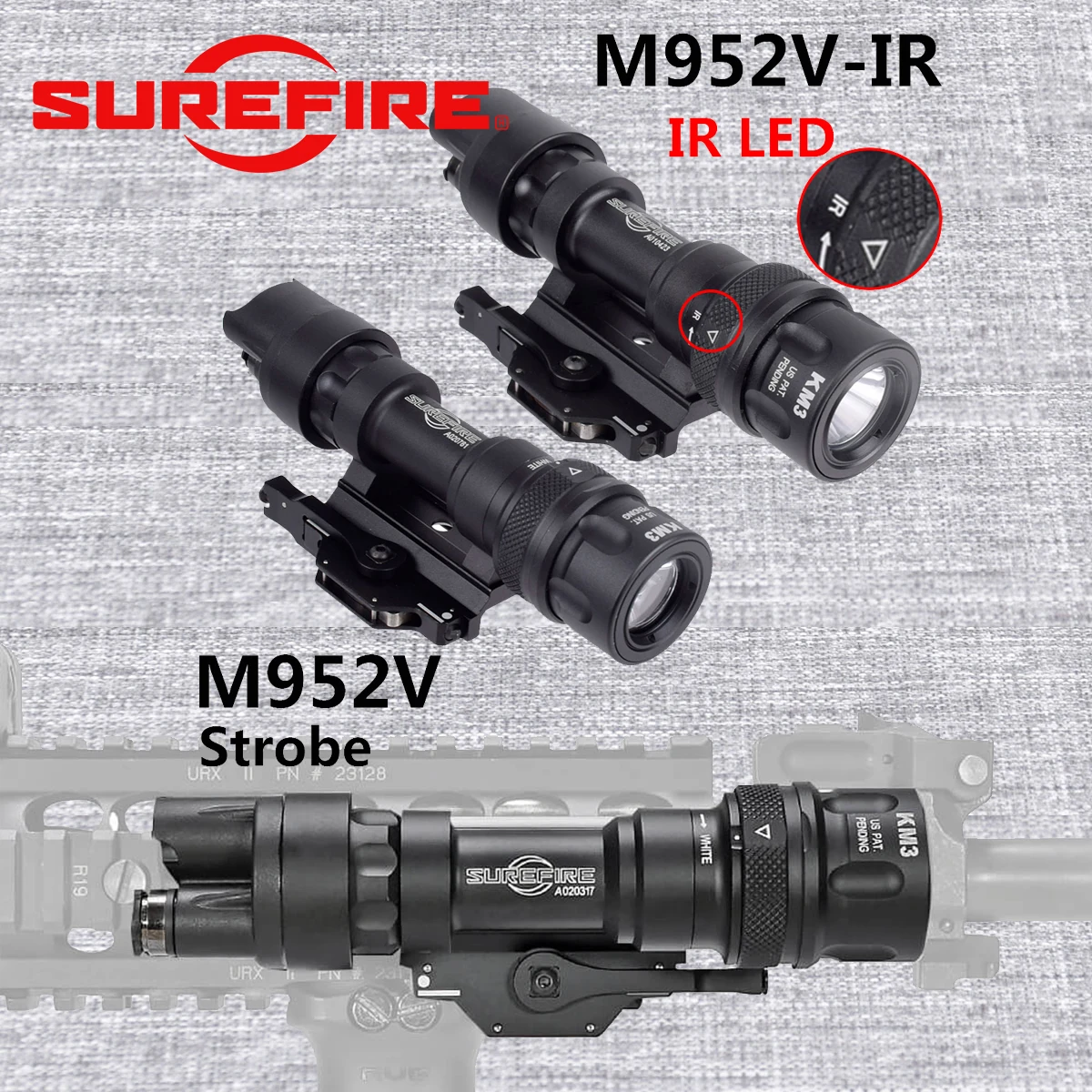 SureFire-Luz LED infrarroja para caza, linterna táctica con montaje en riel QD, M600, M600V, actualización IR, M952V