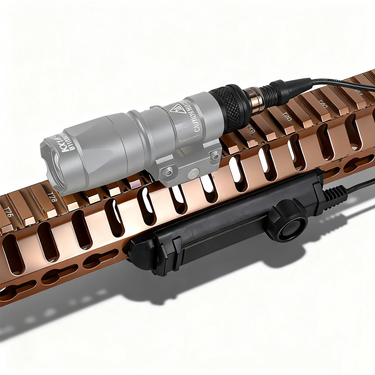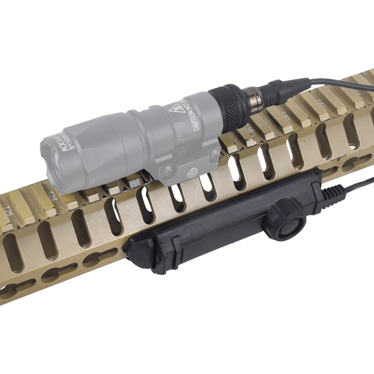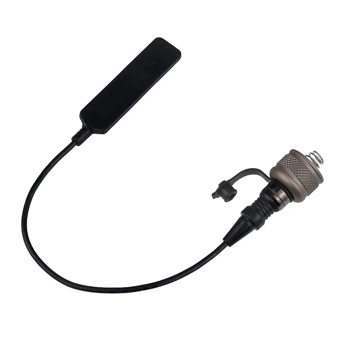 Nombre del producto: Interruptor de presión remoto de linterna Surefir táctica Airsoft Color: negro/bronceado Material: plástico PE, metal Para: Linterna M300 M300A M300C M300W M600C M600U M600DF Tipo: filtro protector de visión de alcance Apto para: caza al aire libre, tiro, juegos de guerra de paintball Airsoft de combate Función: Accesorios de caza, Accesorios de pistola