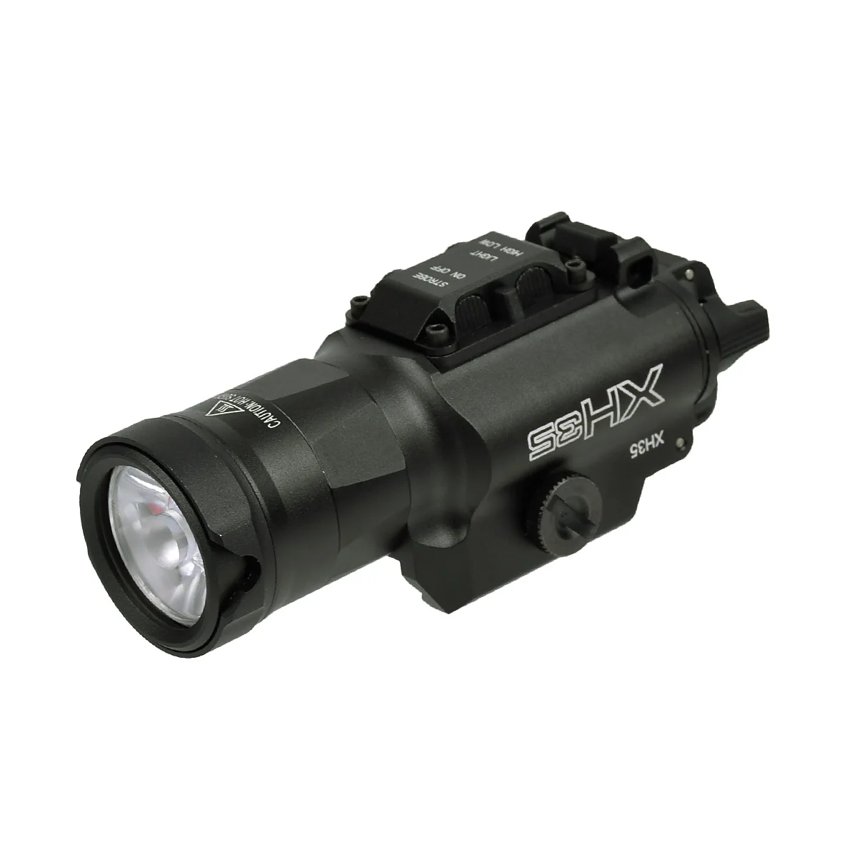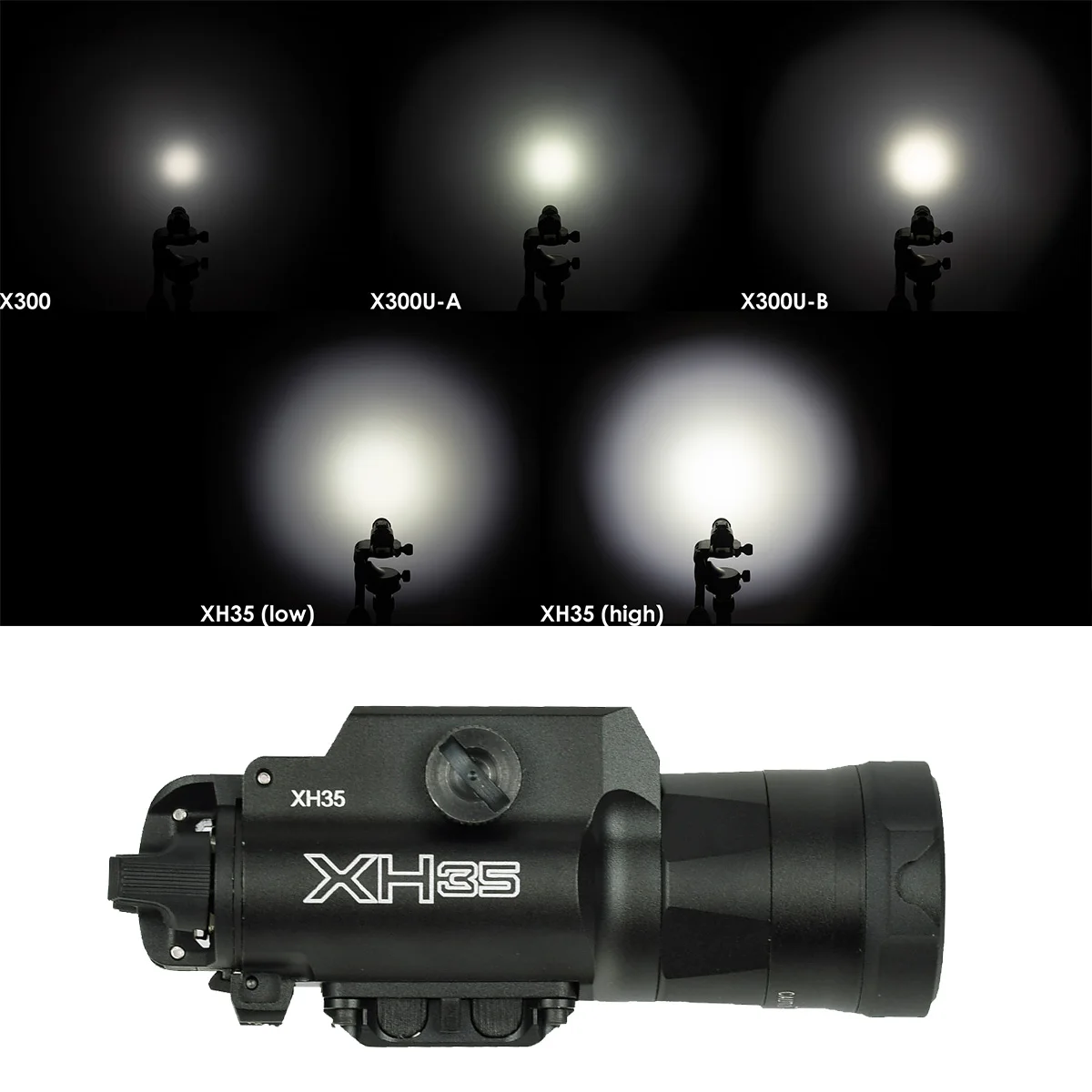 Utilice 2 baterías CR123A 3,0 V.No utilice baterías 16340 de 3,7 V.Porque el voltaje de 3,7 V puede ser demasiado alto y provocar que la lámpara funcione correctamente. H35Descripción del productoBombilla: LEDSalida de luz: 1000 lúmenes a 300 lúmenesAlto rendimiento: 1000 lúmenes / 1,25 horasRendimiento bajo: 300 lúmenes/2,5 horasDiámetro del bisel: 1,25 pulgadasPeso: 4,8 onzasBatería: 2 piezas CR123A 3V (no incluidas)Material: Luz de aluminio aeroespacial con soporte de polímero.El XH35 incluye dos interruptores selectores de modo. Uno para alternar entre 1.000 lúmenes de luz cegantes para obtener una ventaja superior en la oscuridad y 300 lúmenes potentes cuando se necesita menos luz, pero aún existe la necesidad de lograr una amenaza en condiciones de poca luz. El segundo interruptor alterna entre el funcionamiento con luz continua y un modo estroboscópico desorientado. La activación del XH35 se logra mediante conmutación ambidiestra con un solo dedo ubicada en la parte posterior del cuerpo. También están disponibles interruptores de agarre DG opcionales (para pistolas), que permiten la activación quirúrgica sin alterar el agarre del arma. Y el versátil XH35 se puede fijar de forma fácil y segura a cualquier pistola o pistola larga equipada con un riel Universal o Picatinny a través de su sistema Rail-Lock.
