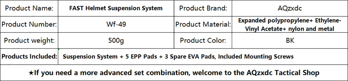 ➤ El producto incluye: sistema de suspensión + 5 almohadillas EPP + 3 almohadillas EVA de repuesto, tornillos de montaje incluidos.
