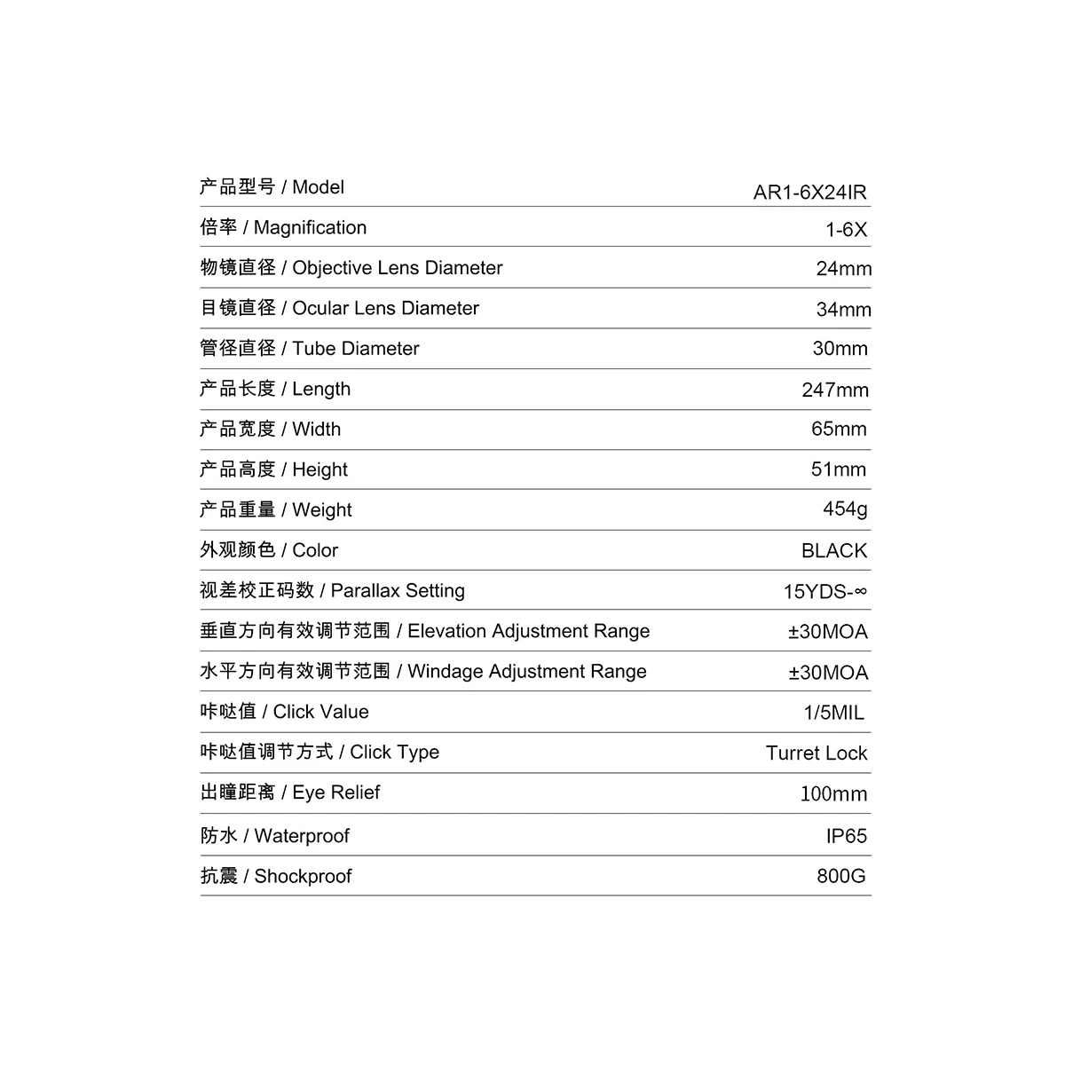 T-EAGLE AR1-6X24IR RifleScope táctico LPVO Airsoft óptica vista verde rojo iluminado caza Airsoft alcance 11mm/20mm montaje