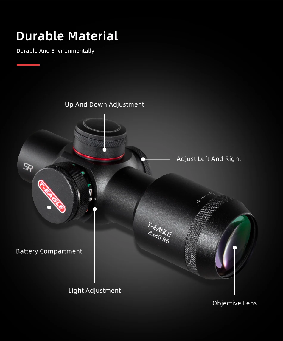 T-eagle HD SR 2X28 mira RG óptica táctica mira telescópica alcance corto luz francotirador Airsoft pistolas de aire con soportes para caza