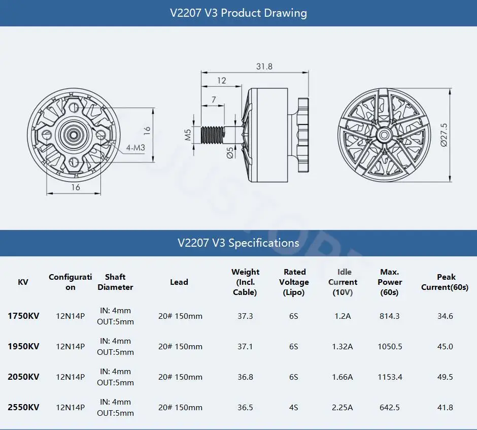T-motor V2207 V3.0 1750KV 1950KV 5-6S 2550KV4S Racing Motor sin escobillas FPV Drone Quadcopter Freestyle Control remoto, nuevo