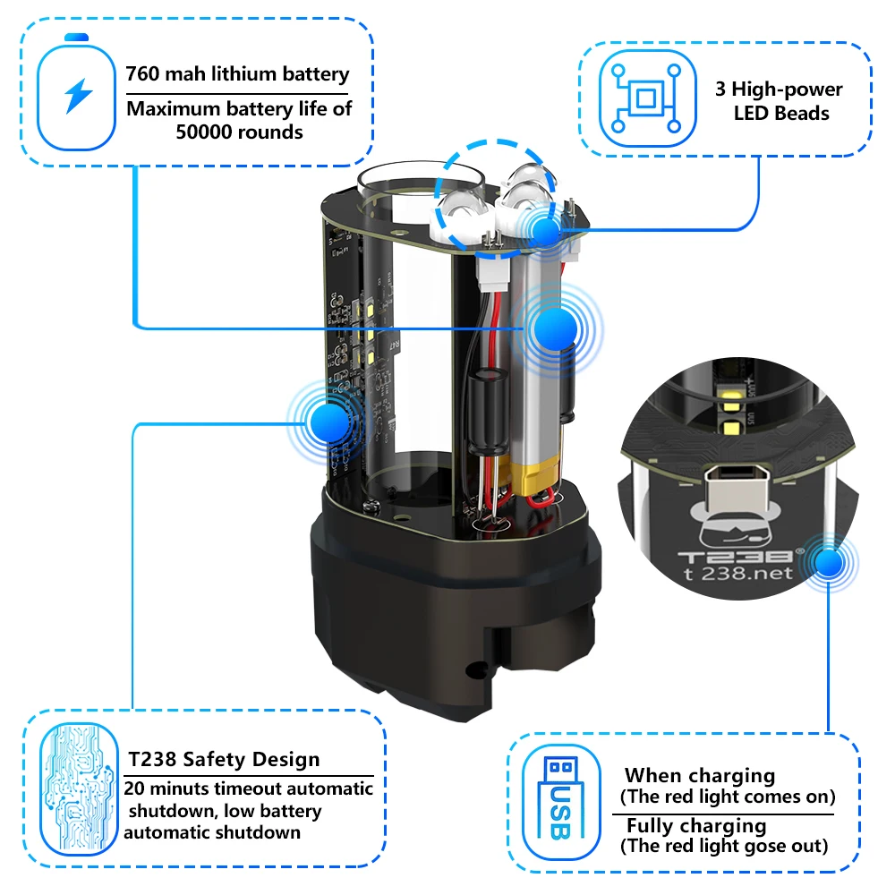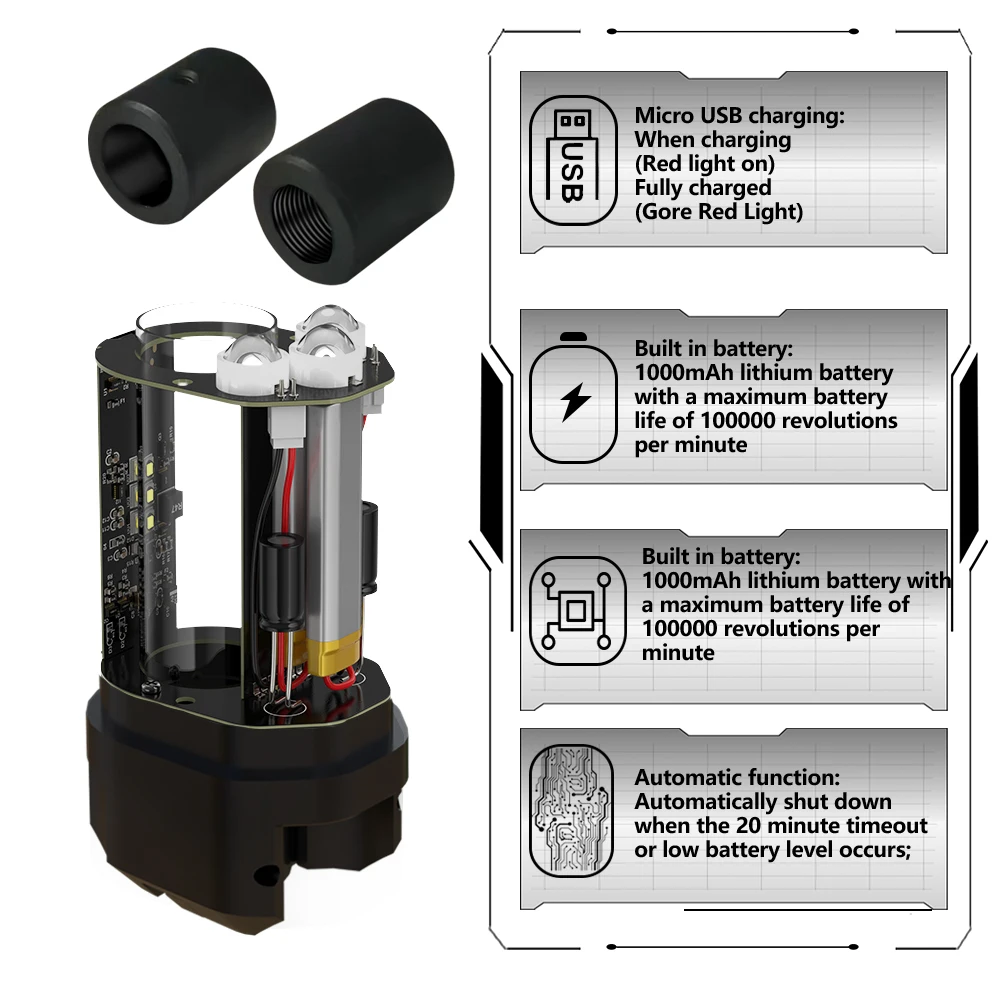 Batería: 760mAh, resistencia máxima 50000 rondas, carga con cable de TYPE-C