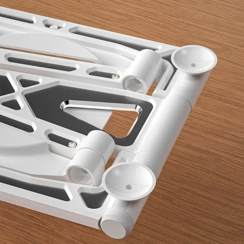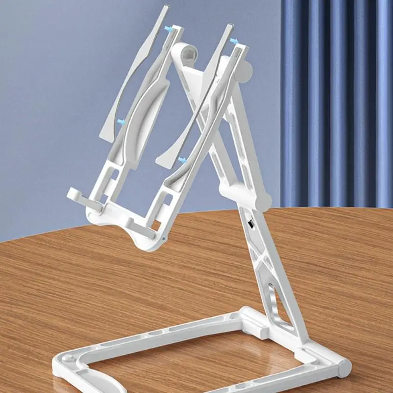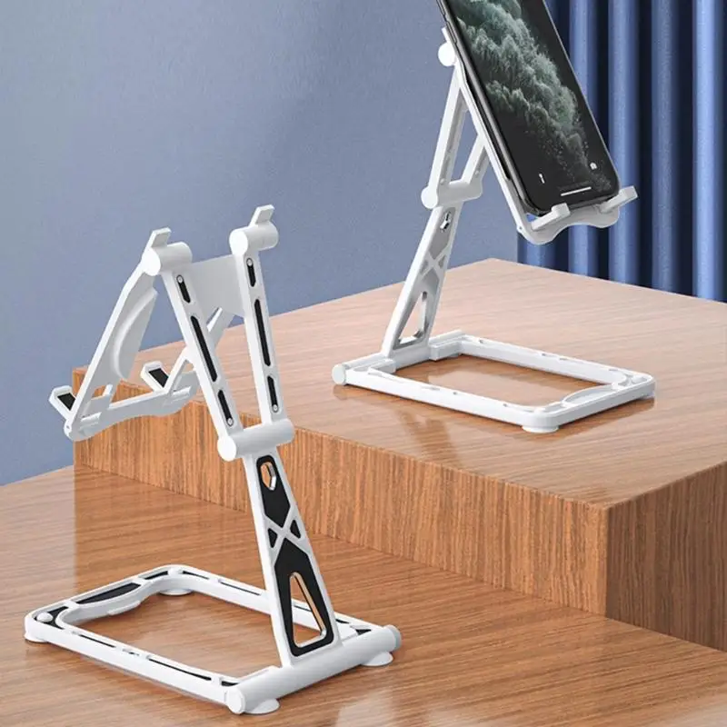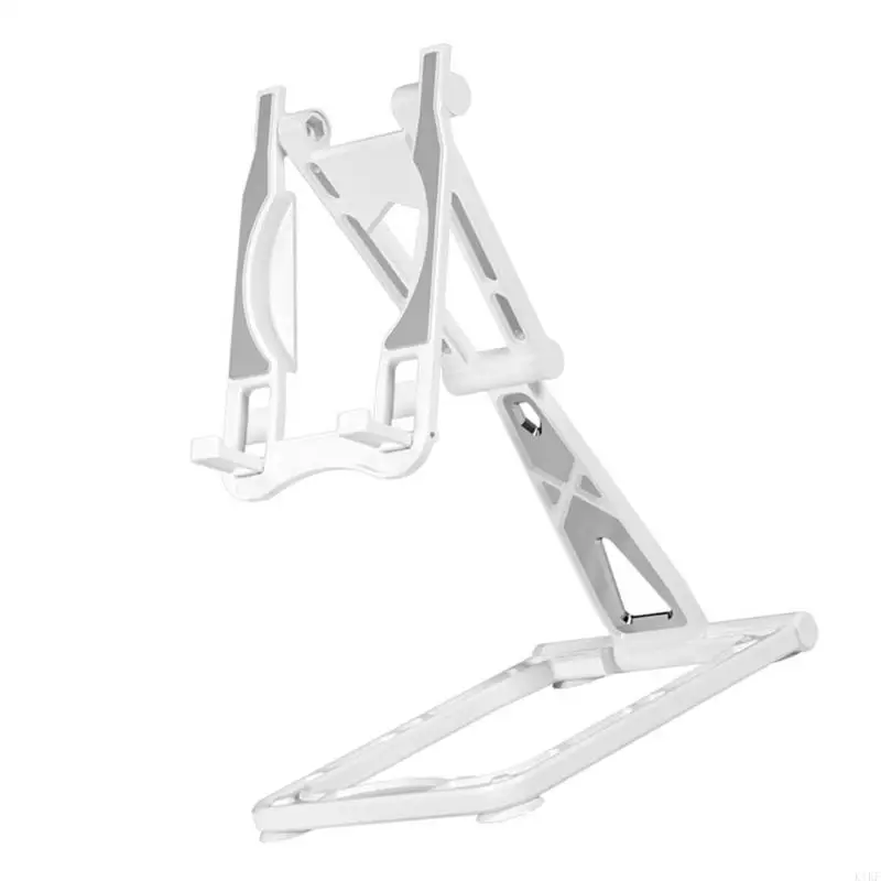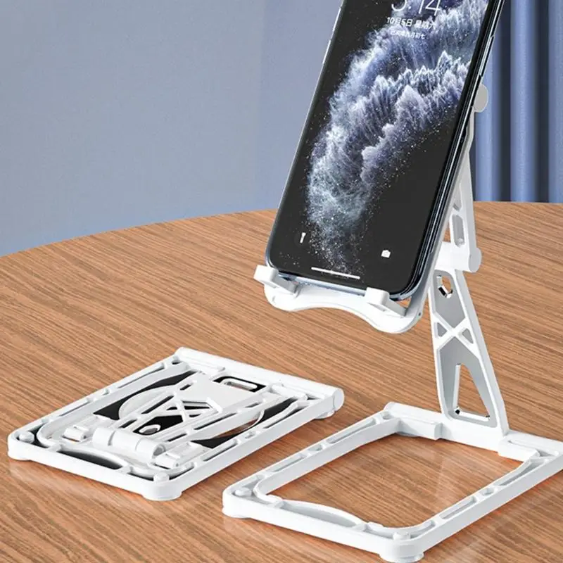 Fabricado en aluminio y ABS, este soporte incluye una base y una estructura plegable para una colocación segura del dispositivo y un almacenamiento eficiente en el espacio.