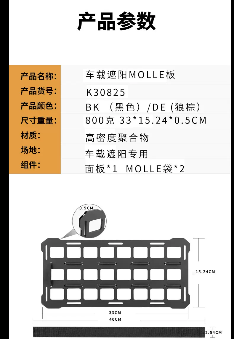 Tablero Molle para sombrilla de coche, tablero para sombrilla de coche, almacenamiento y fijación de artículos diversos, paquete de accesorios