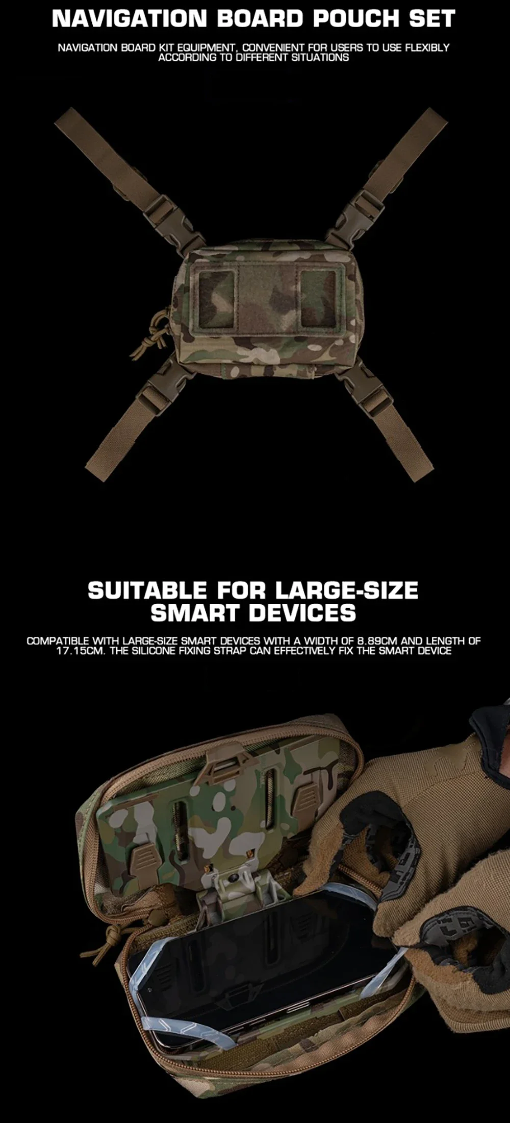 Tablero de navegación plegable con brújula GPS para teléfono móvil de gran tamaño con correa de fijación de soporte de bolsa