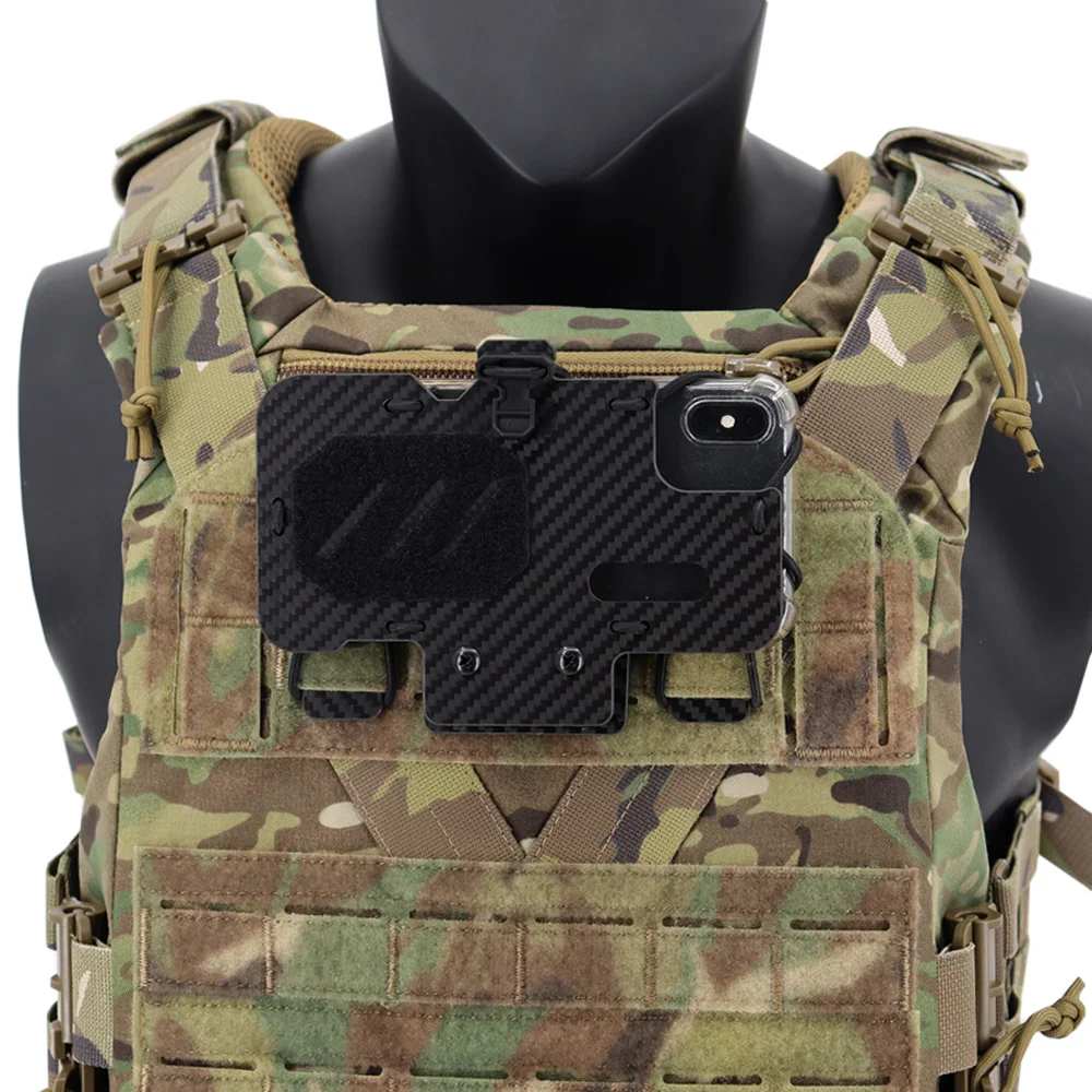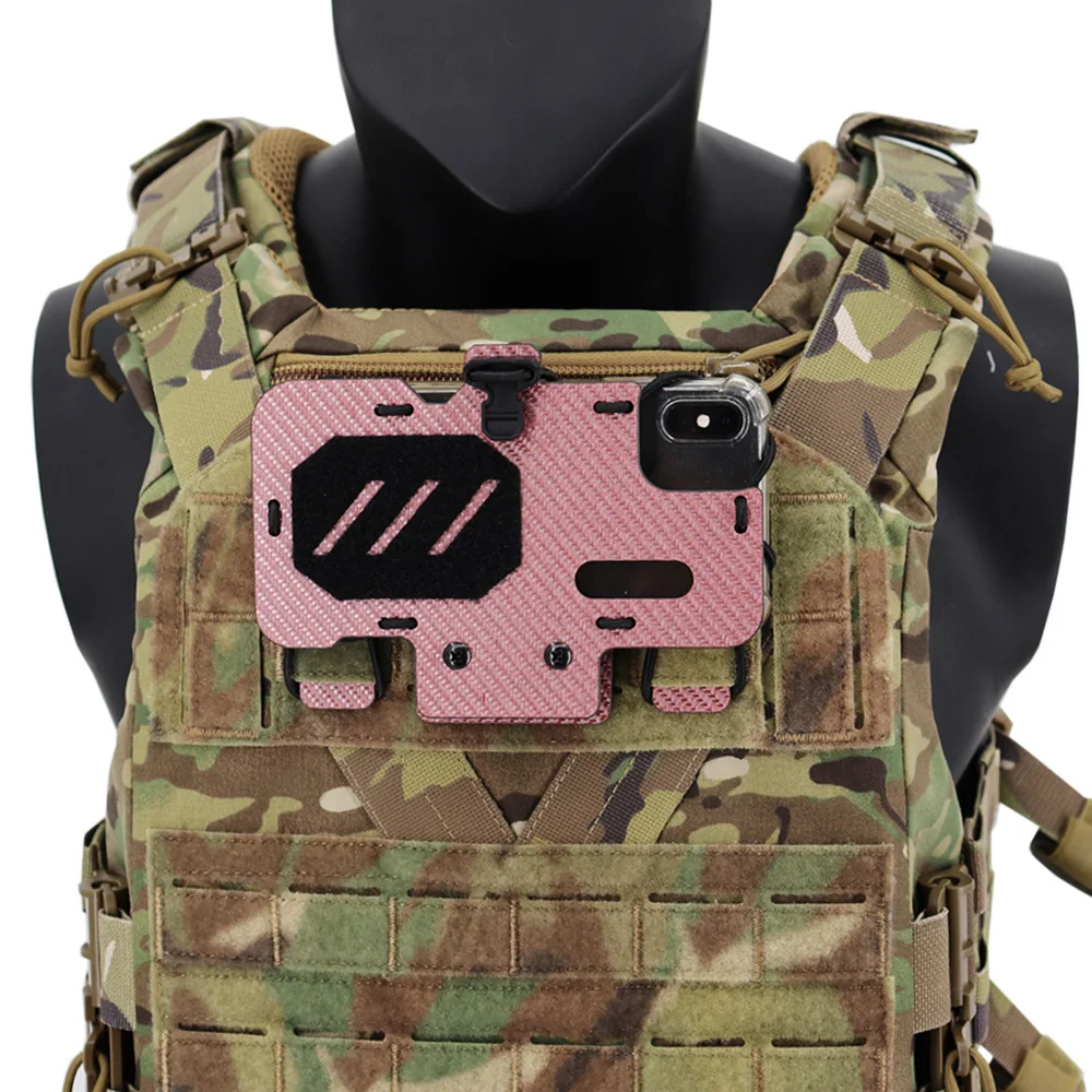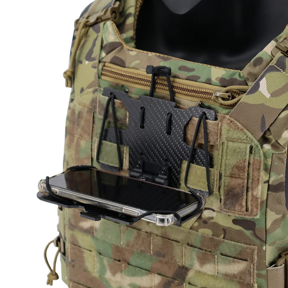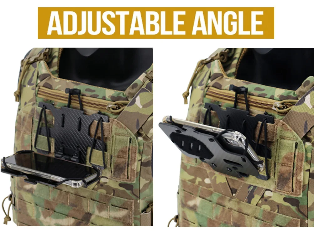 Nuevo estilo táctico fibra de carbono MOLLE tablero de navegación plegable caza Airsoft chaleco soporte para teléfono móvil soporte para teléfono en el pecho