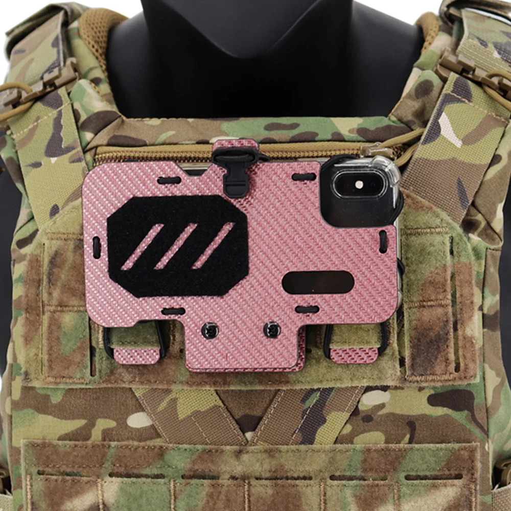 Nuevo estilo táctico fibra de carbono MOLLE tablero de navegación plegable caza Airsoft chaleco soporte para teléfono móvil soporte para teléfono en el pecho