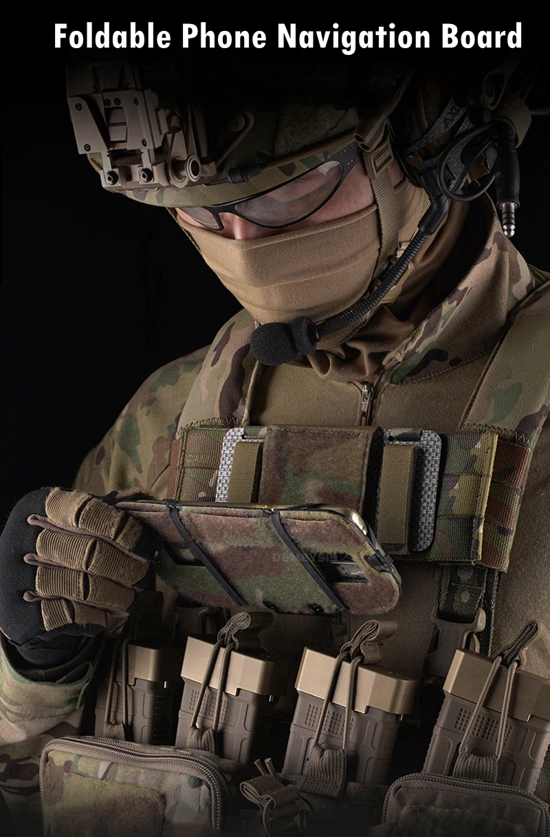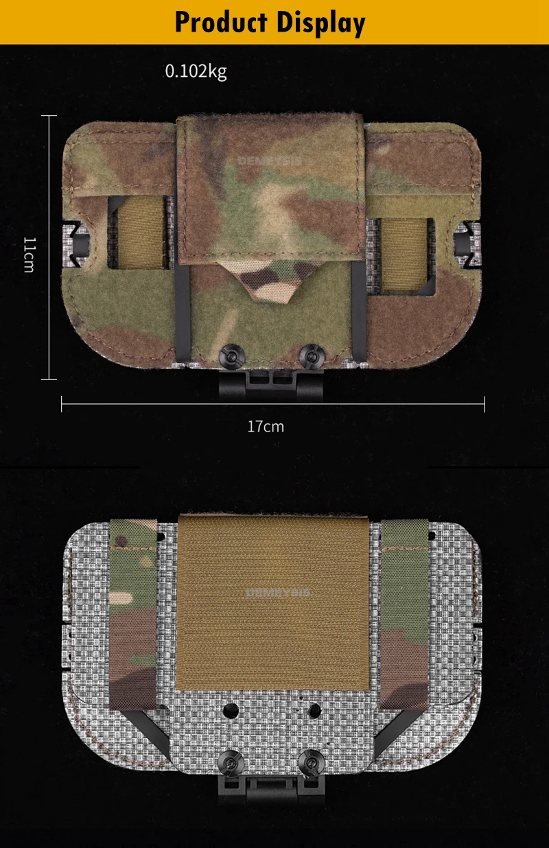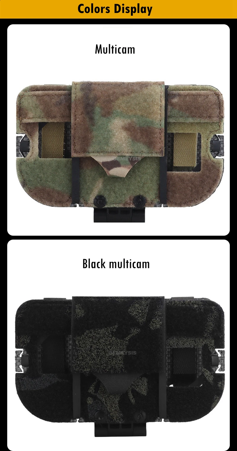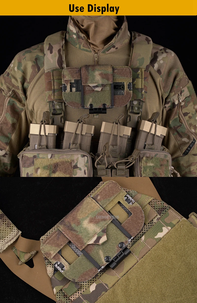 ● Gancho y bucle para fijar. Diseño de sistema MOLLE. Se puede colgar en cualquier chaleco táctico de pecho.