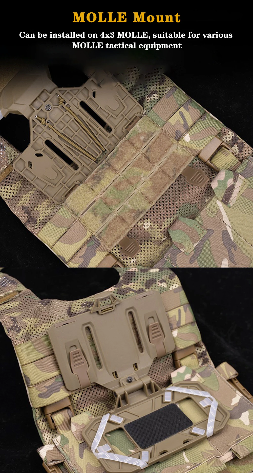 - Compatibilidad MOLLE:Correa de conexión MOLLE/PALS, se puede instalar en varios sistemas MOLLE, fácil de usar.