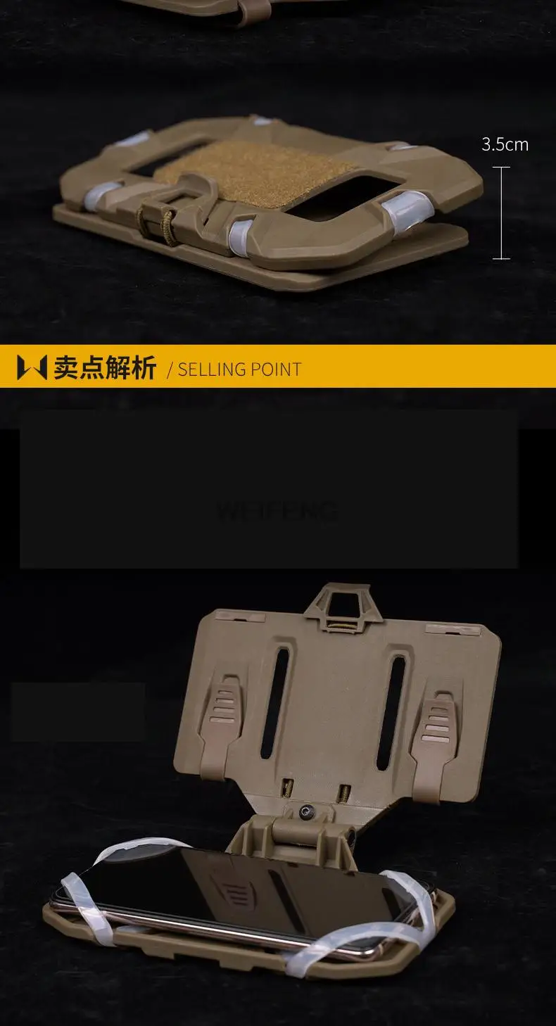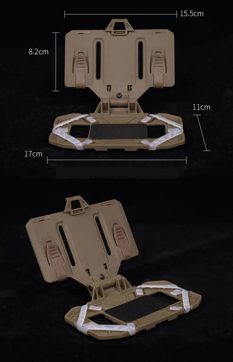 Nombre del producto: Tablero de navegación plegado Material: nylon + TPE + silicona Color del producto: negro, bronceado, CP, BK CP Peso neto del producto: aproximadamente 0.142kg Tamaño del producto: aproximadamente 11*17cm. Escenario de uso: juegos tácticos, actividades al aire libre, etc. Característica: 1. Adecuado para la instalación de dispositivos dentro de 8,89*17,15*1,74 cm. 2. Se puede montar en equipos MOLLE 4*3 y es compatible con todos los Equipos Tácticos molle 3. Hebilla fija plegable, se puede plegar a voluntad Paquete: 1 * Tablero de navegación plegado/1 * Correa de fijación