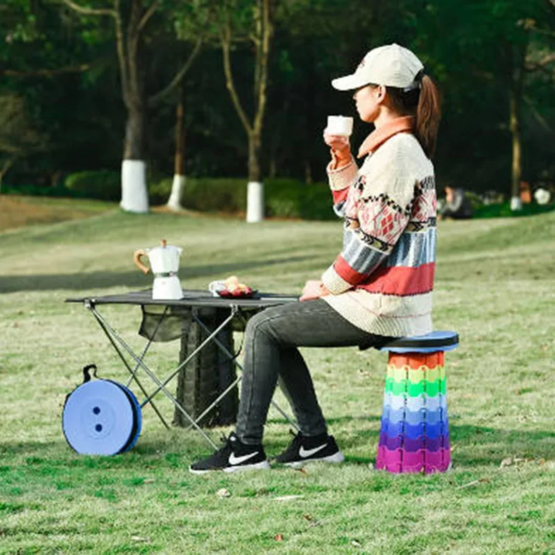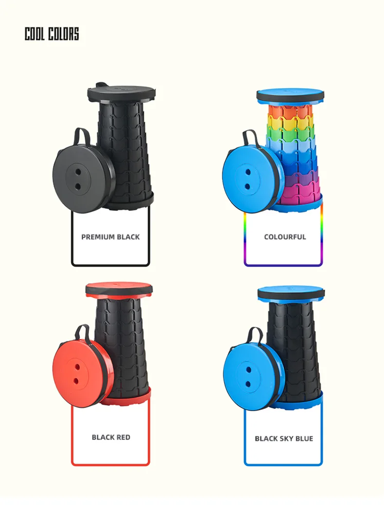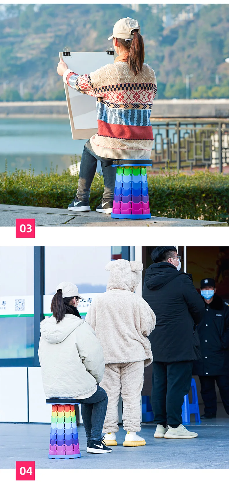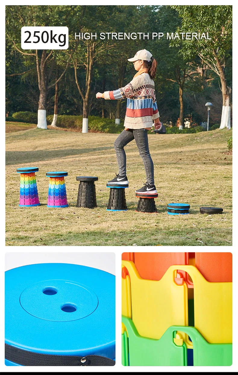 Taburete telescópico portátil para acampar al aire libre, pesca, silla retráctil ajustable, taburete plegable de plástico ligero para colas de Metro
