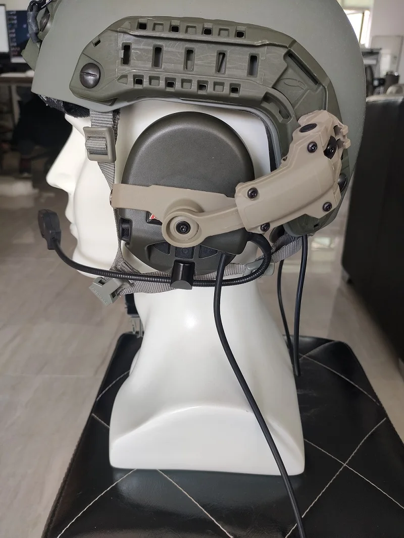 Los auriculares tácticos se instalan en el casco con este producto. Cuando no está en uso, los auriculares se pueden girar hacia la parte posterior del casco, lo que simplifica el método de almacenamiento y crea una apariencia muy discreta.