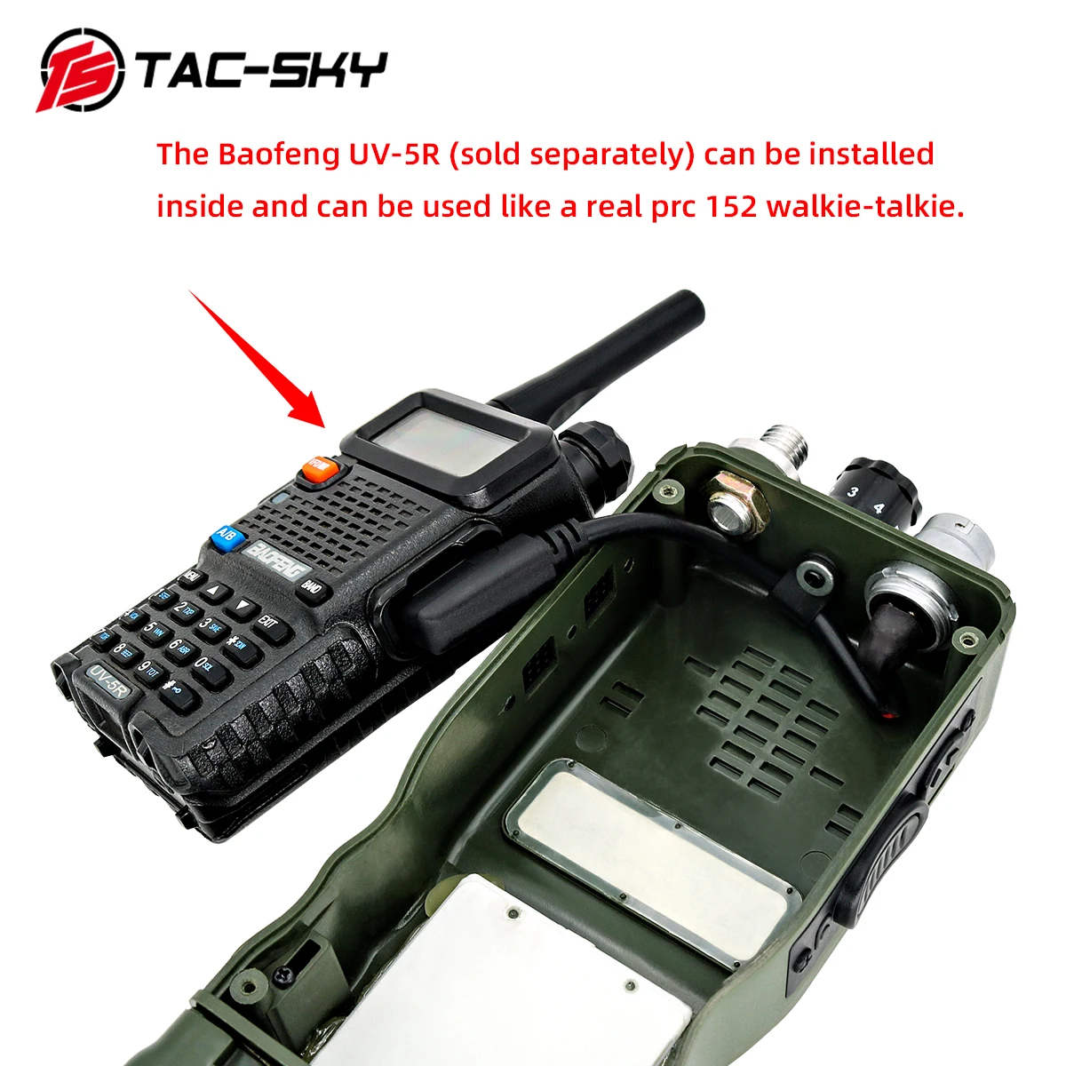 TAC-SKY PRC 152A Dummy Radio Case Suitable for DIY operation The dummy 152A Radio Caseis suitable for loading Baofeng walkie-talkie(UV5R UV82 Or other suitable models) The 152A box contains a 6-pin base + Kenwood cable You can use Baofeng walkie-talkie(UV5R UV82....) PTT uses 6-pin plug 152A box does not include walkie-talkie+ u94ptt The maximum size of the walkie-talkie that can be loaded inside the box 5.2cm*12.cm*2.5cm