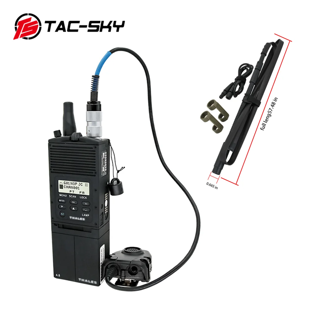 TAC-SKY AN/PRC148 modelo de radio táctica bidireccional con antena plegable y conjunto de modelos PELTOR (PTT) de 6 pines.