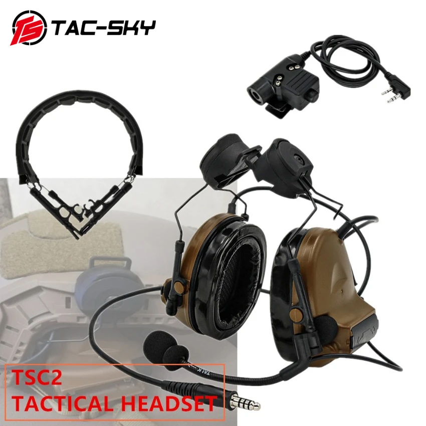 TAC-SKY ARC Rail soporte versión TSCII auriculares tácticos reducción de ruido Protector de oído auriculares con U94PTT + diadema táctica