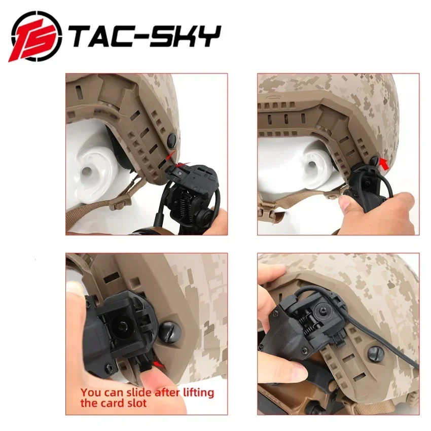 El adaptador de riel de este auricular se puede utilizar en toda la gama de cascos FAST, cascos ACH, cascos MICH y otros cascos con rieles ARC en el lateral.