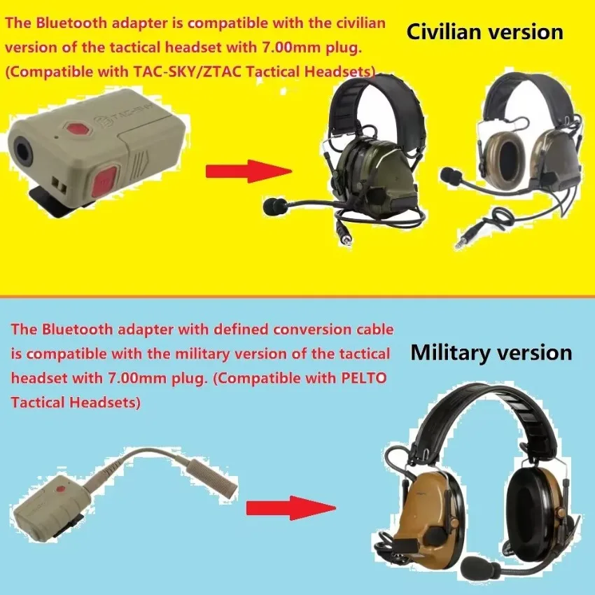 TAC-SKY auriculares tácticos adaptador Bluetooth para PELTO MSA AMP auriculares tácticos para COMTAC SORDIN Airsoft auriculares de tiro