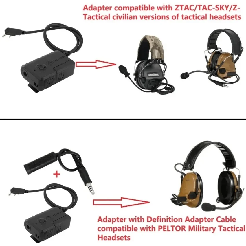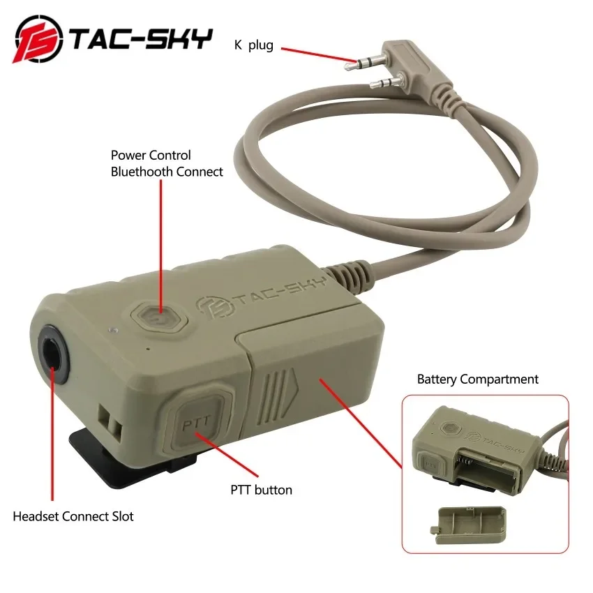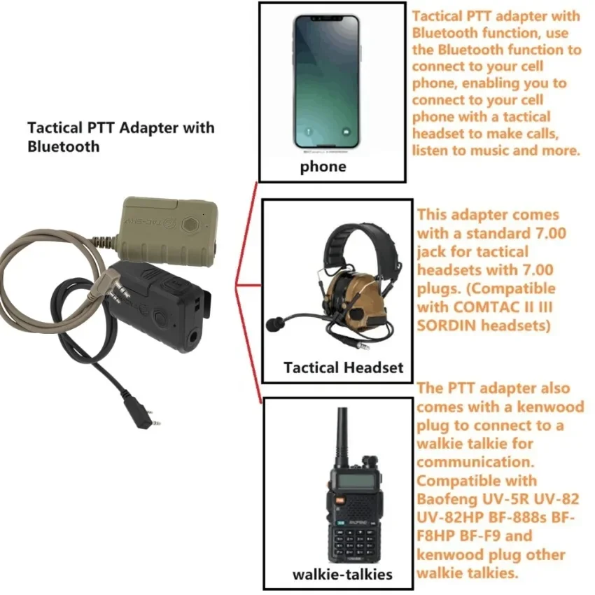 TAC-SKY auriculares tácticos adaptador Bluetooth PTT enchufe de 7,0mm para Comta ii iii Sordi auriculares de disparo para Walkie Talkie Baofeng