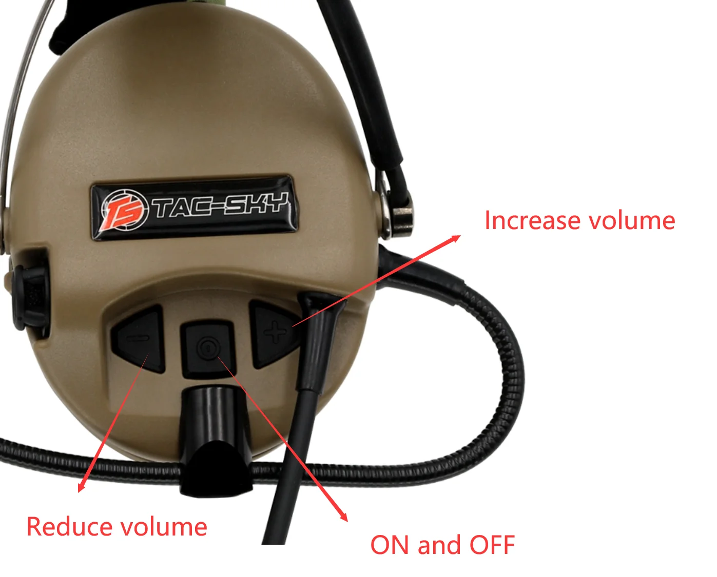 El diseño de perfil bajo permite usar debajo del casco o la cabeza. Amplificador para el sonido circundante, operado por 1 Batería AAA con tapa de batería impermeable.