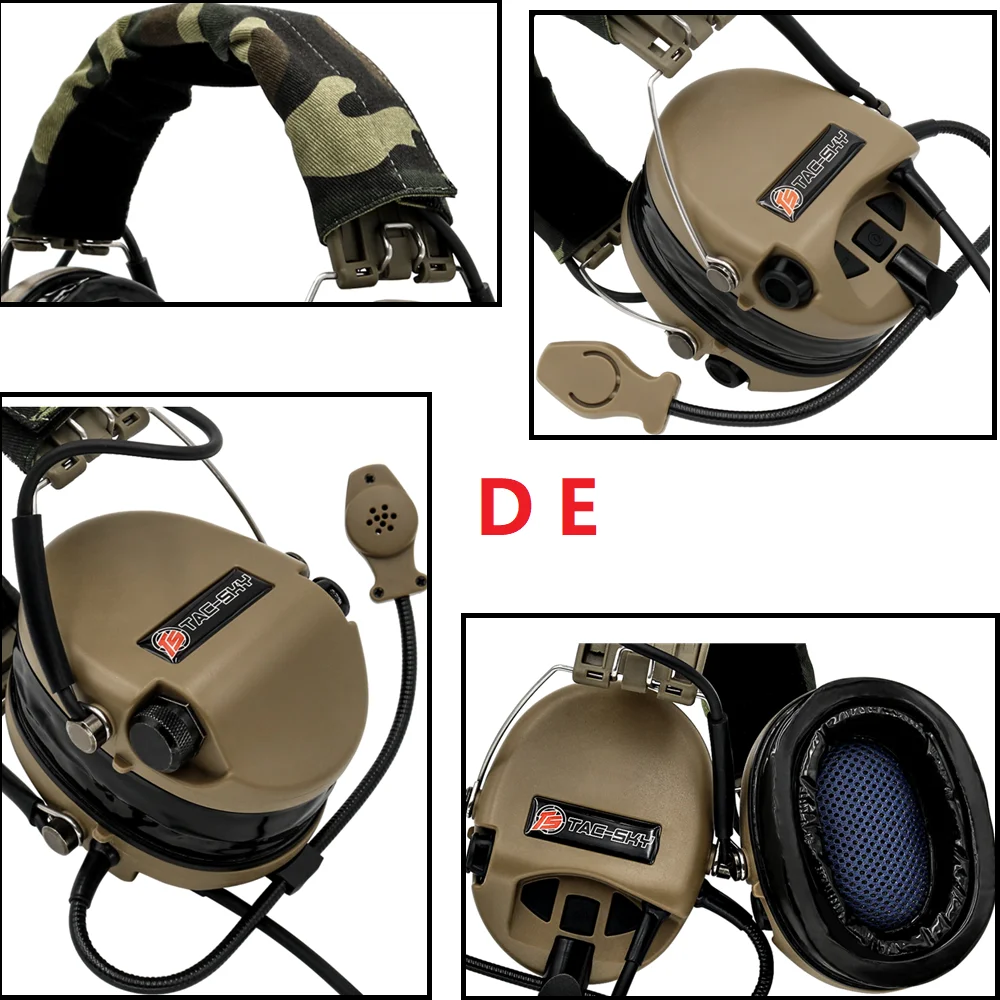 Auriculares similares a los utilizados por las fuerzas especiales militares. Enchufe de versión estándar militar. Tazas de diseño delgado para diestros y tiradores zurdos.