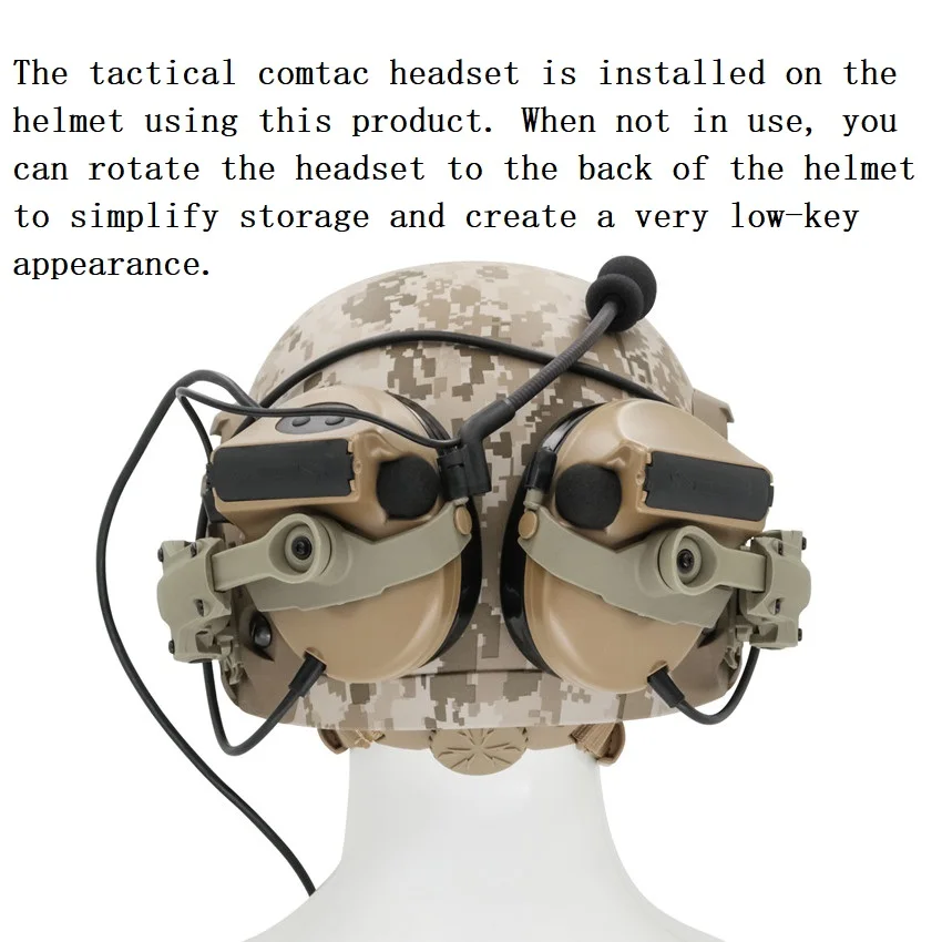 Los auriculares tácticos Comtac se instalan en el casco utilizando este producto.Cuando no esté en uso, los auriculares se pueden girar hacia la parte posterior del casco, lo que simplifica el método de almacenamiento y crea una apariencia muy discreta.