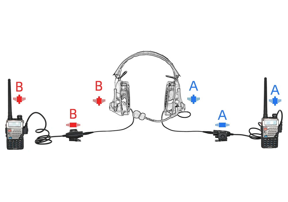 El auricular es una versión de doble comunicación.El diseño de doble enchufe puede comunicarse con 2 personas a través de un auricular de airsoft.Este es un auricular de defensa auditiva muy adecuado para líderes deportivos de airsoft.