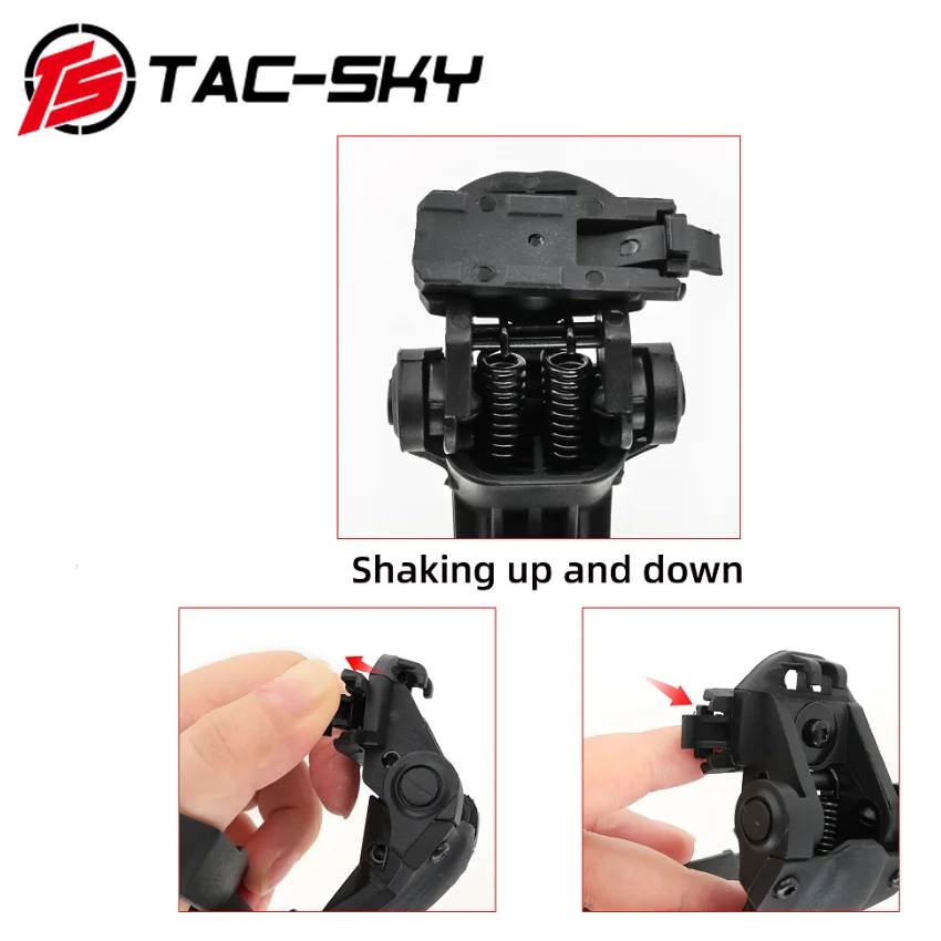 El adaptador de riel del soporte de este auricular es la pista del casco ARC OPS core, que es adecuada para cascos de la serie FAST, cascos de la serie ACH y cascos MICH. Este adaptador de riel de casco de arco puede girar 360 ° y moverse hacia arriba y hacia abajo. La ranura para tarjeta del soporte para auriculares también se puede girar. La longitud del soporte también se puede ajustar.