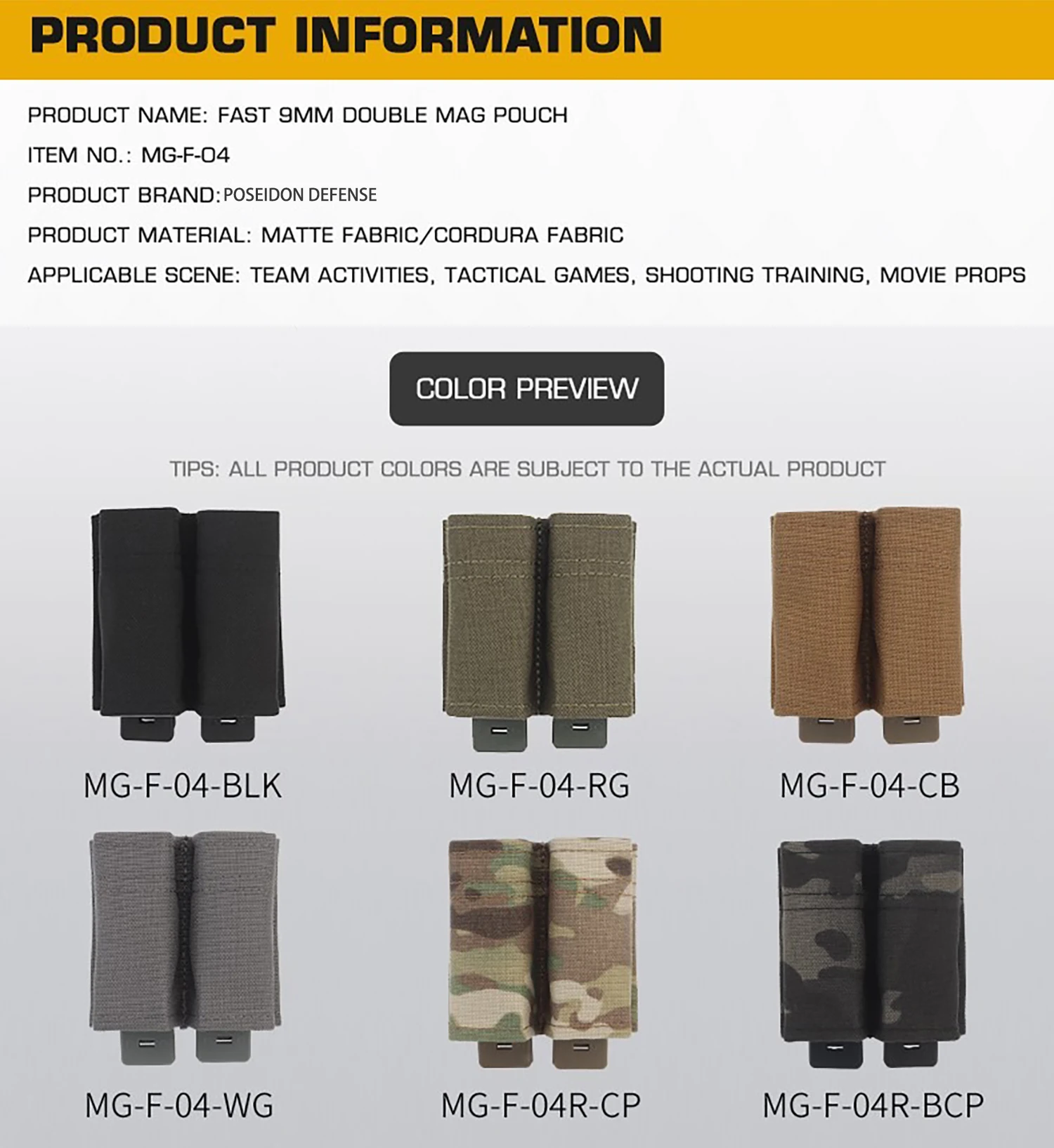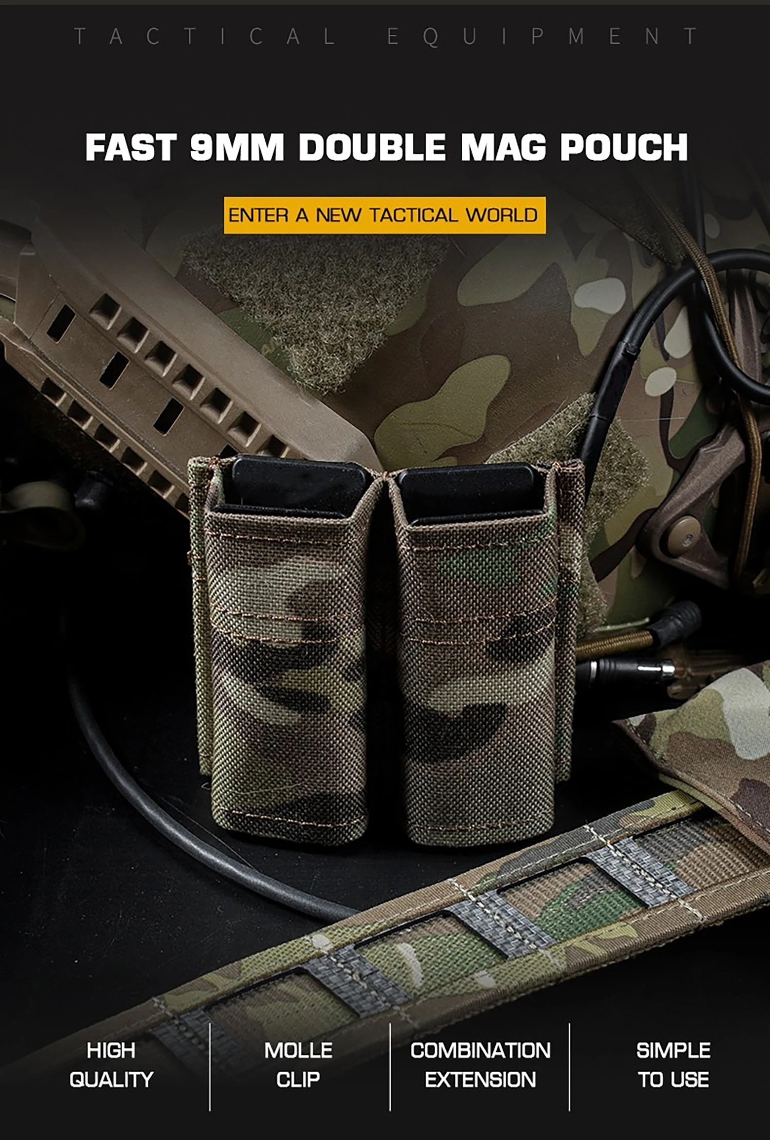 TACGEAR Pistola FAST 9mm.40.45ACP Bolsa doble para revistas Soporte portador magnético Compatible con cinturones Molle Chaleco portador de placa