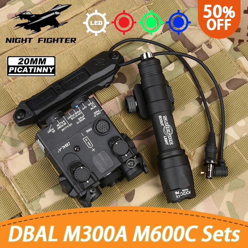 Táctica DBAL-A2 versión simplificada, conjuntos de linterna Surefir M300A M600C, punto rojo, indicador de Airsoft apto para láser de caza de Rail de 20mm