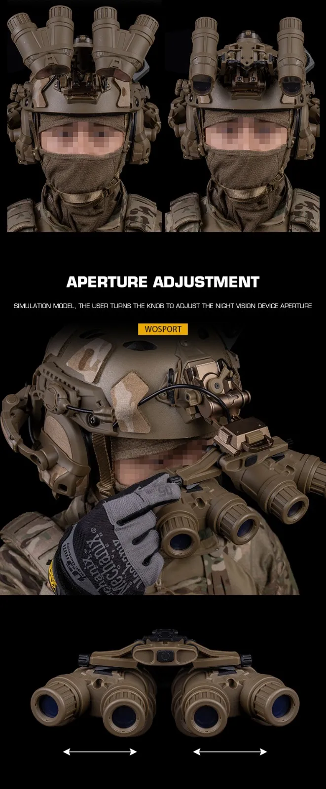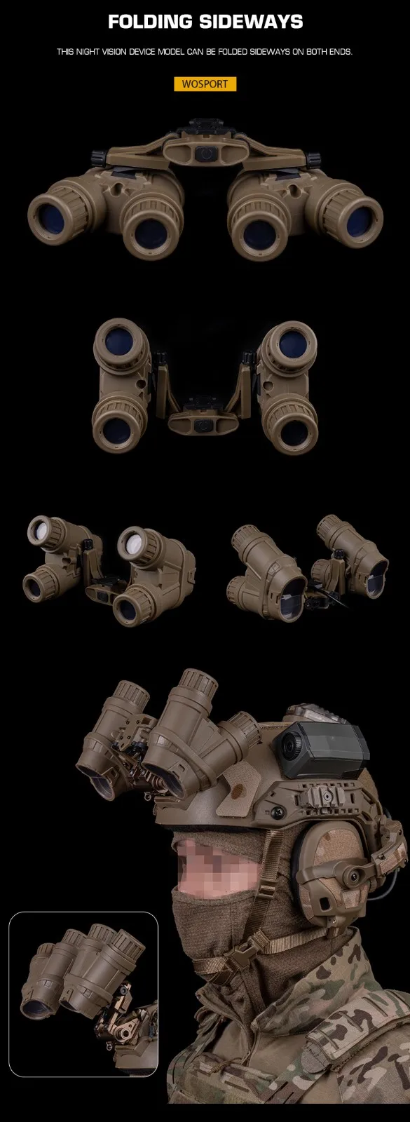 Este modelo de dispositivo de visión nocturna se puede plegar hacia los lados en ambos extremos