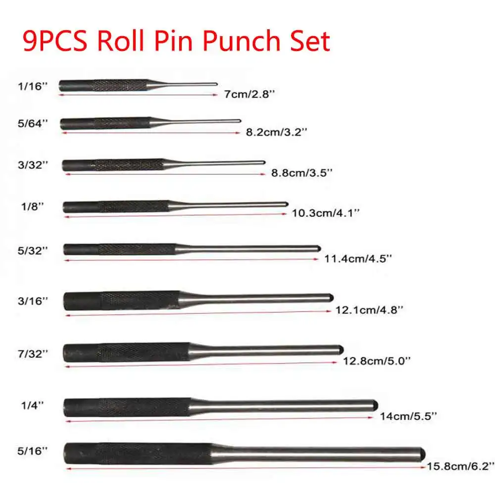 Material: El acero endurecido es una gran herramienta para desmontar y reutilizar la aguja sin dañar significativamente los pasadores.Estas herramientas están tratadas térmicamente, forjadas con martillo, endurecidas y moleteadas para una mayor durabilidad, procesabilidad y rendimiento general.Configure este punzón duradero para que funcione para usted.Con 9 piezas y una práctica bolsa enrollable, este juego ofrece innumerables trabajos en cualquier momento y lugar.El resultado es un traje duradero y utilizable que funciona en todo momento.