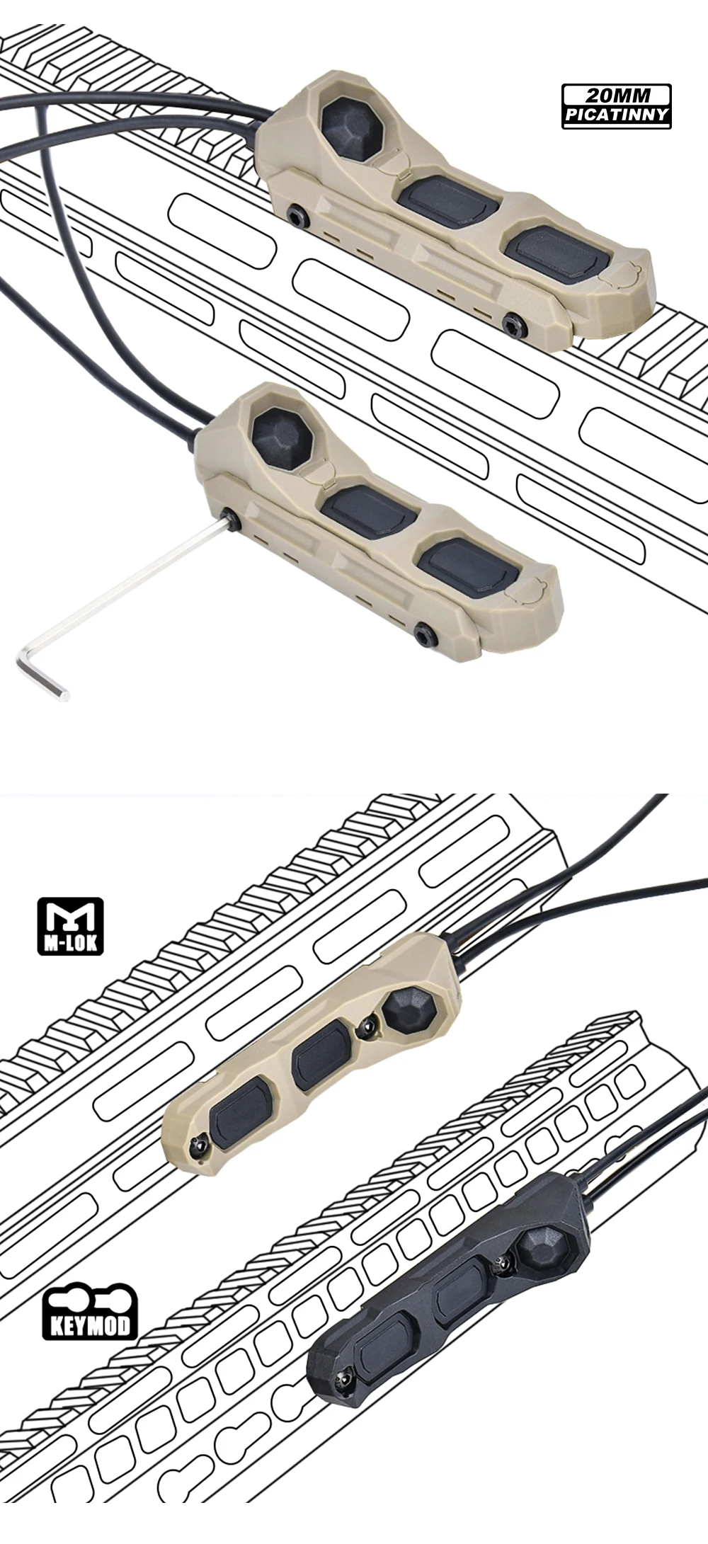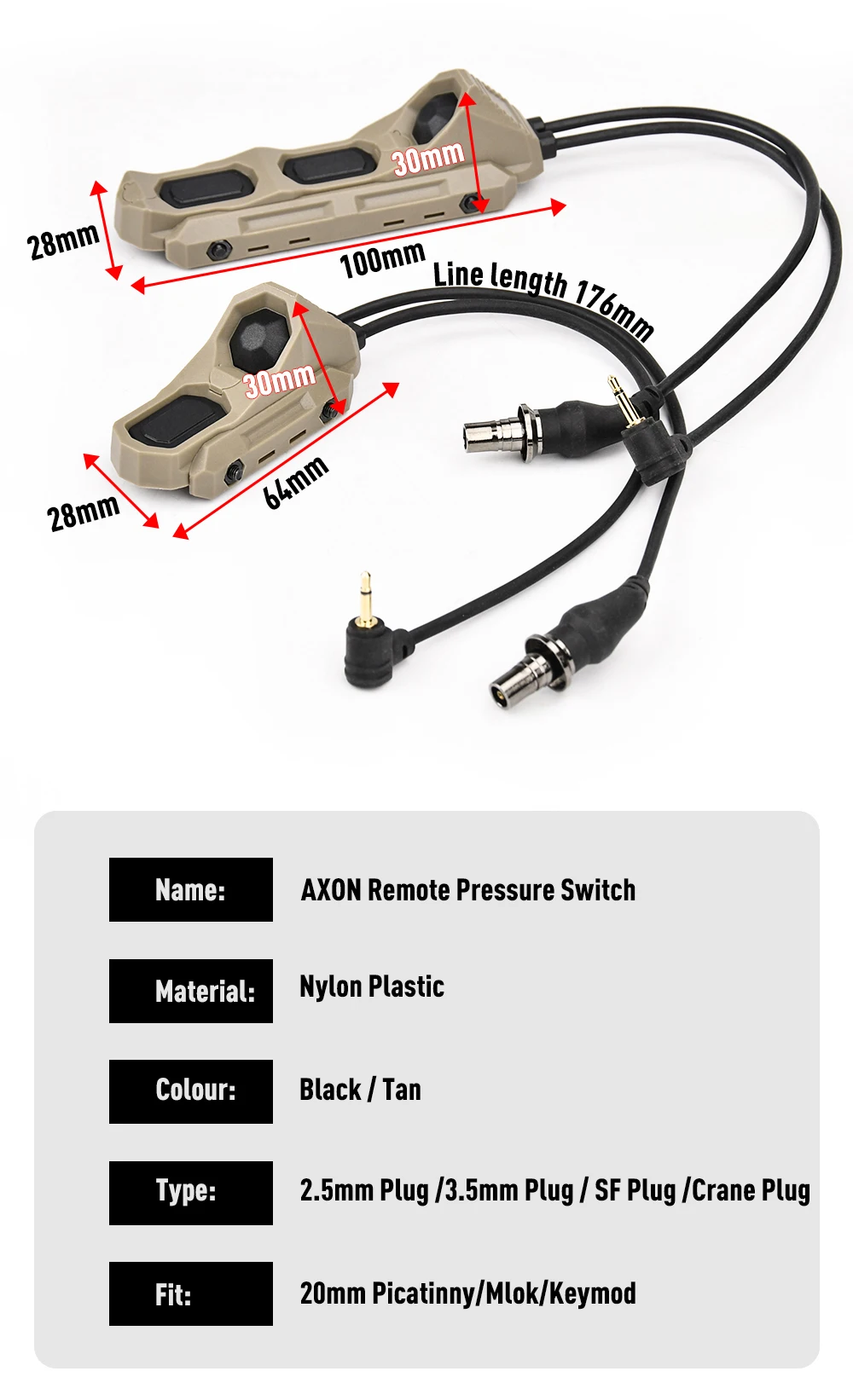 Tactical WADSN AXON UNIT Botón Modular Dual Función Interruptor Remoto de Presión para Airsoft SF/2.5/3.5/Conector Crane Compatible con PEQ NGAL OGL Laser