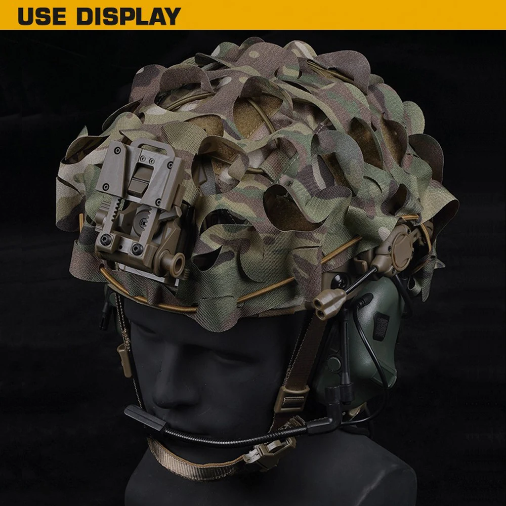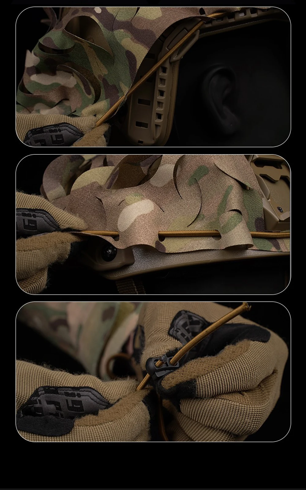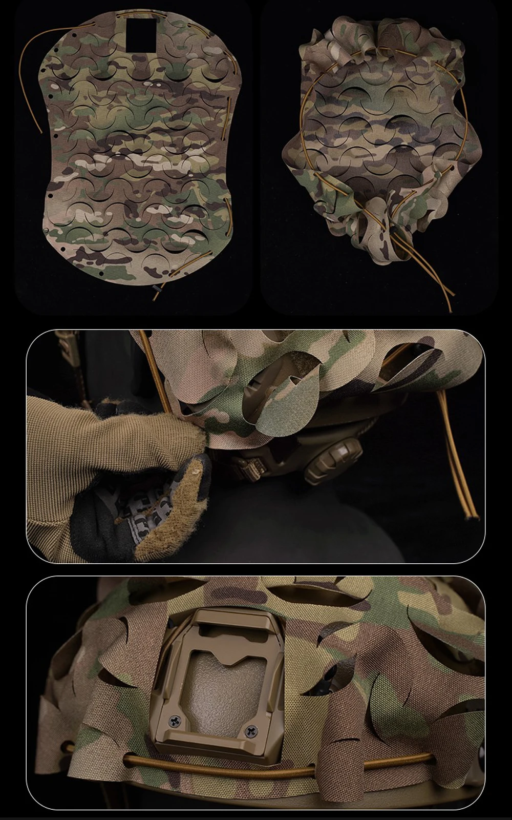 Nombre del producto: funda ligera para casco cortada con láser. Número de artículo.:CO-20R Tamaño del producto: 30*20 cm Peso neto del producto: 0,02 kg. Color del producto:Multicam/MulticamBlack/MulticamGreen/MulticamTan/MulticamWhite Material principal: tela Cordura. Escena aplicable: caza, deportes al aire libre y otros deportes tácticos de Airsoft, etc.
