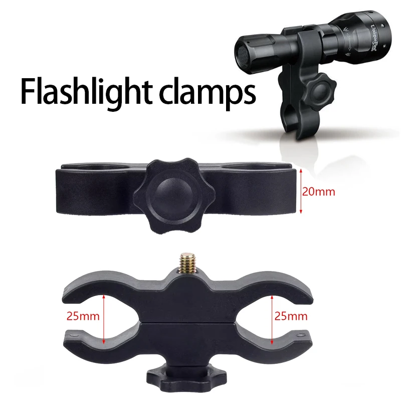 3. Material: plástico de alta calidad. Montura de plástico de alta calidad para antorchas/miras telescópicas/láseres. Montura muy versátil que se adapta a diferentes diámetros y luces de caza al mismo tiempo. La montura de alcance funciona con linternas/antorchas/miras telescópicas (especialmente adecuadas para linterna de caza de la HS-802). Amplia gama de usos, ideal para la caza.