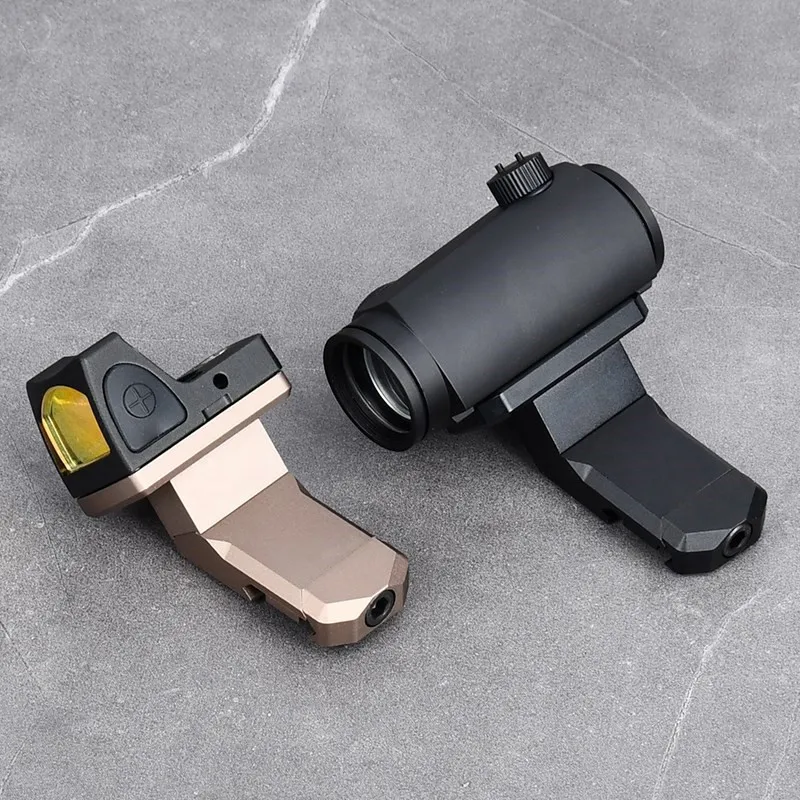 Buena calidad. Fácil de cambiar entre 35 y 45 grados de desplazamiento. Aimpoint Micro H2 encaja bien en la placa de montaje suministrada.