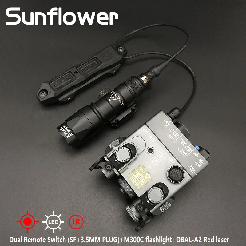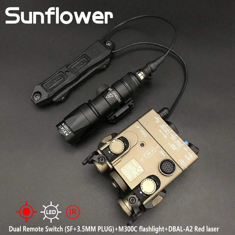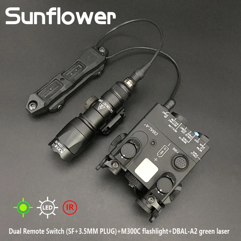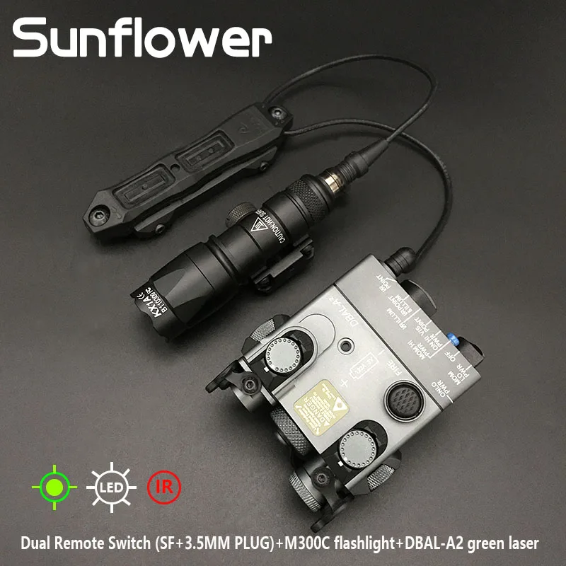 Táctico DBAL A2 láser verde rojo IR vista arma luz LED M300C M600 linterna Control remoto doble interruptor de presión Airsoft Set