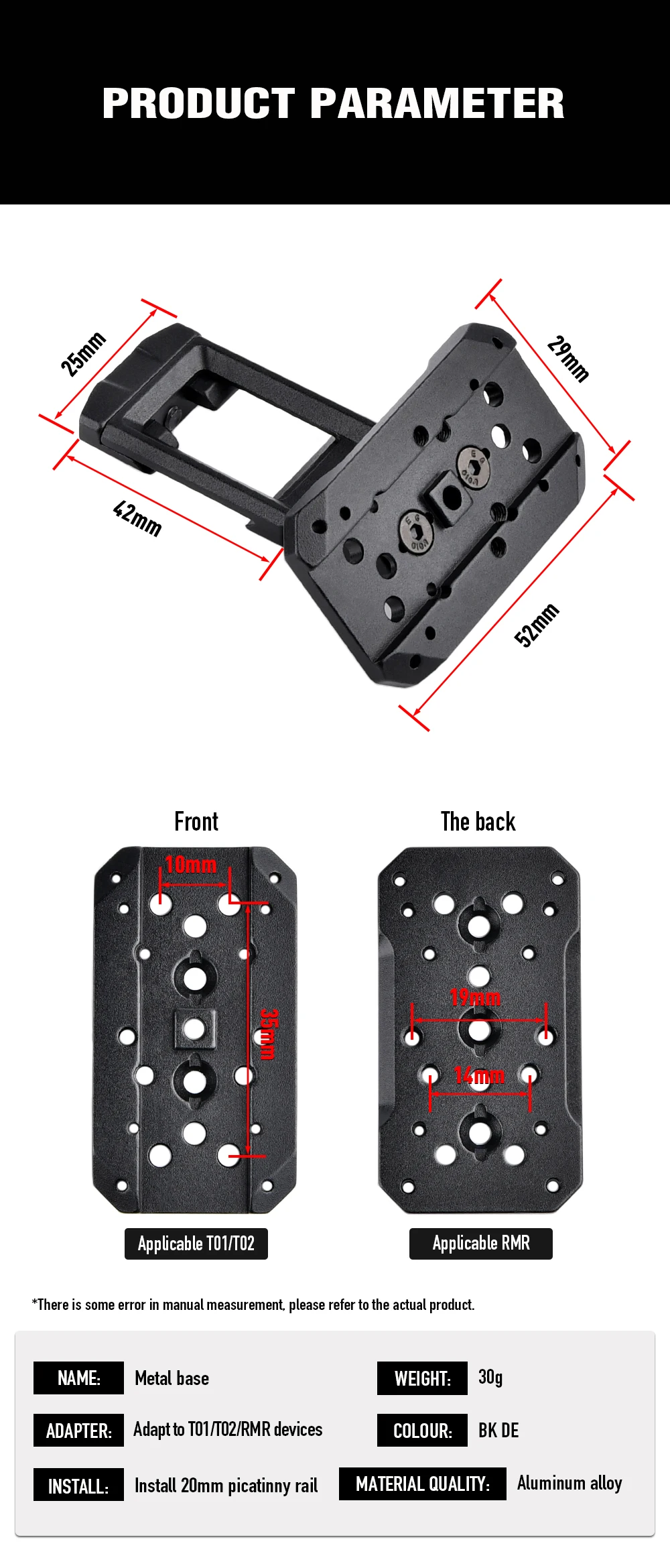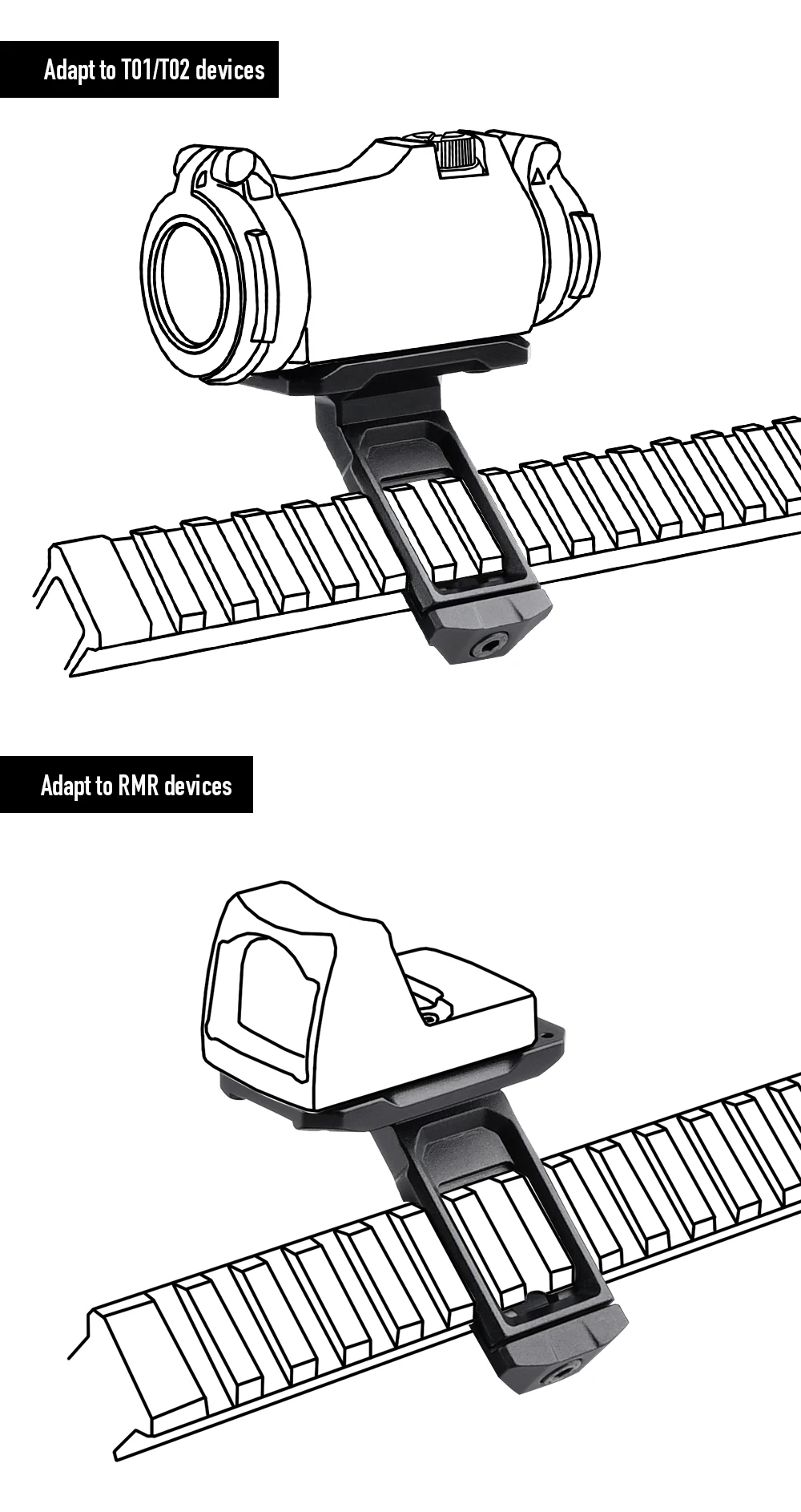 Táctico Metal SI 45 ° Base óptica montada en offset T01/T02 soporte de mira holográfica de punto rojo instalación R accesorio de riel de 20mm