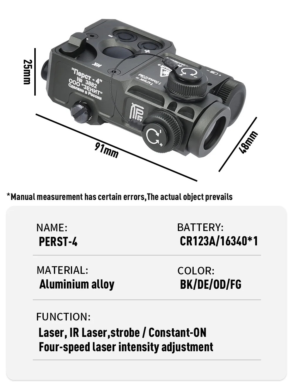 Material: aleación de aluminio (linterna)/aleación de aluminio (PERST-4)