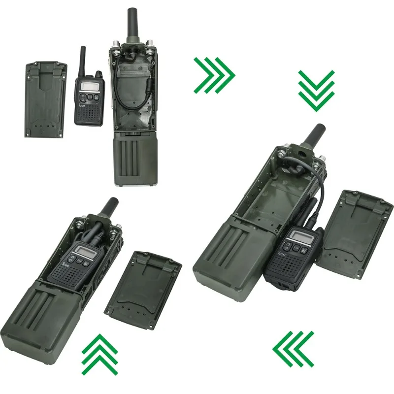 Funda de Radio simulada PRC 163 adecuada para la operación de bricolaje La carcasa de Radio simulada PRC 163 es adecuada para cargar walkie-talkie Yaesu Vertex (VX6R de 21 a 30 cm u otros modelos adecuados).