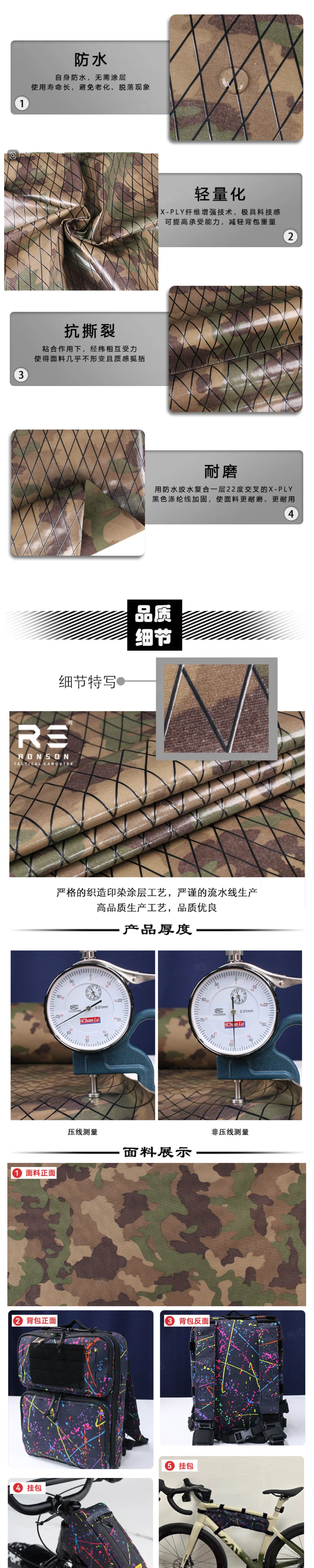 Construcción de la tela:500D x 500D, compuesto de triple capa
