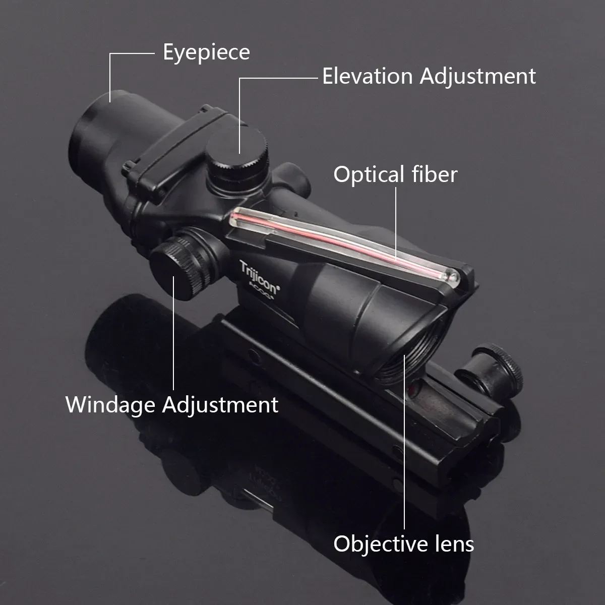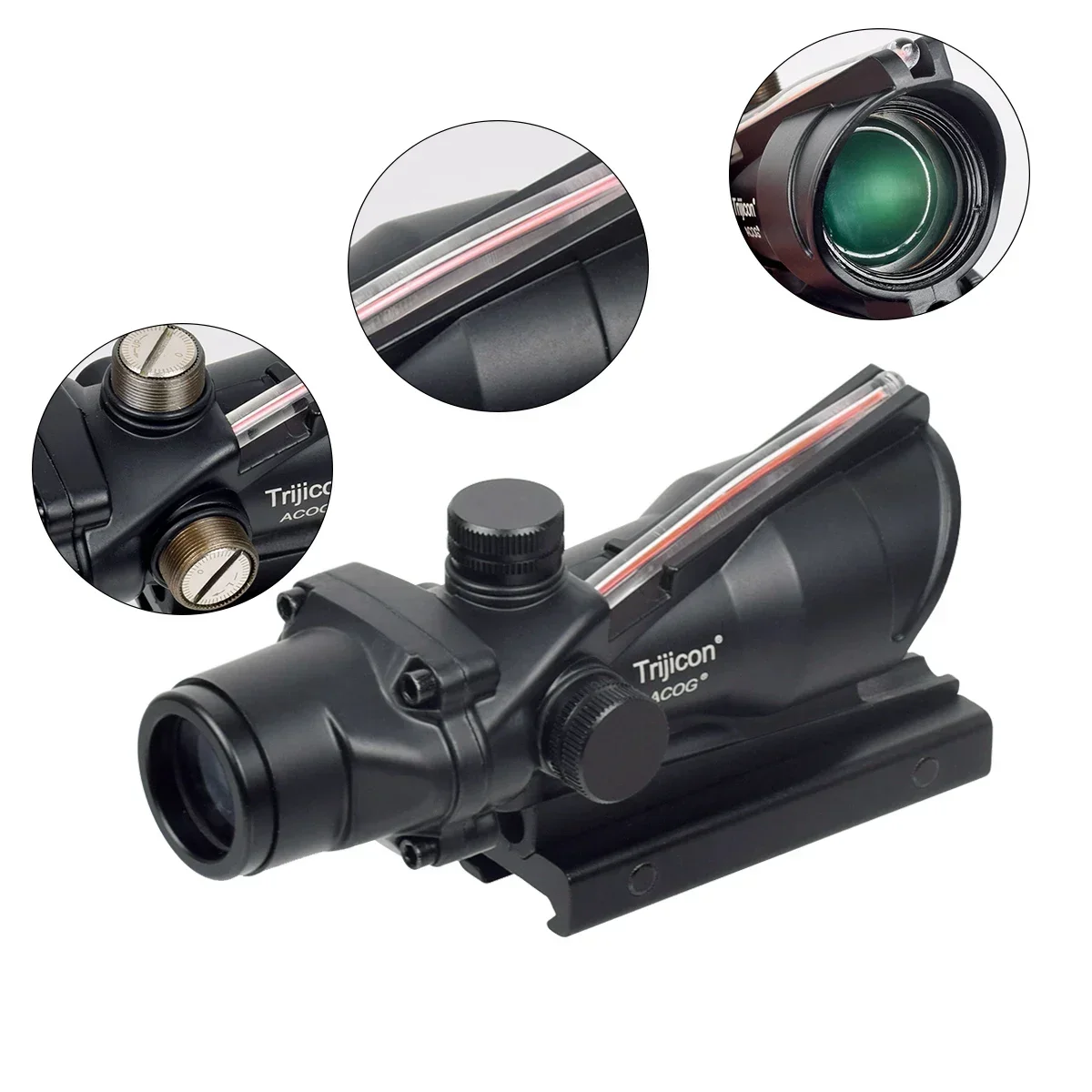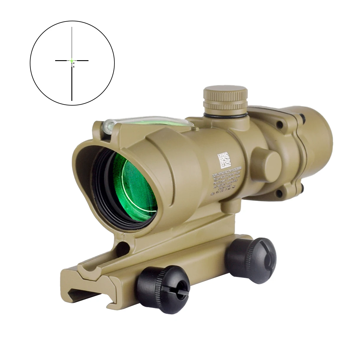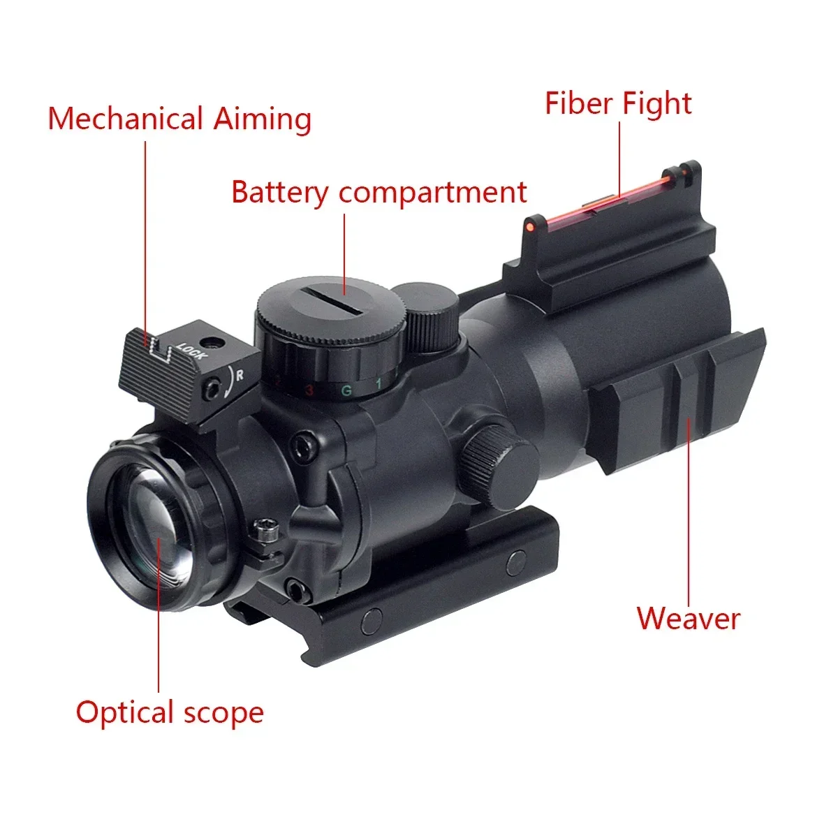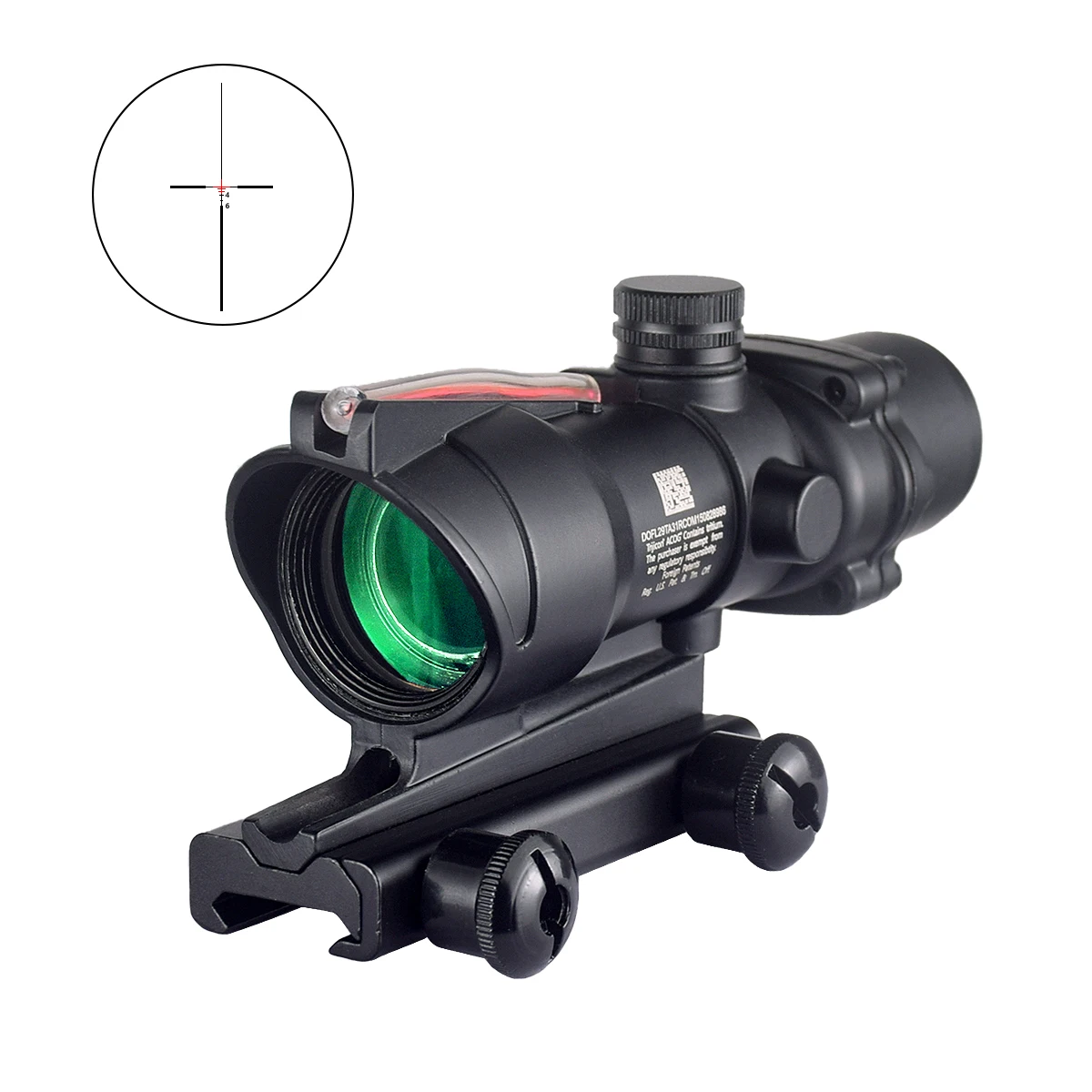 Especificación: 1.Sin paralelo. 2.Se instala fácilmente en cualquier riel Picatinny de 20 mm. 3.Diámetro objetivo: 32 mm 4.Ampliación: - 4X, Micro Punto Rojo - 1X 5.Alivio ocular: 1,5" 6.Peso combinado: 460 g 7.La fibra óptica funciona realmente 8. Fundición totalmente de metal con acabado en negro mate de goma. 9.Revestimiento reflectante antideslumbrante en la lente frontal.