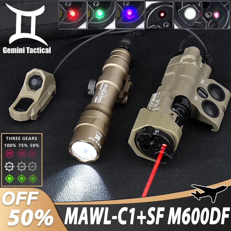 Táctico WADSN nuevo MAWL-C1 actualizado rojo verde punto azul láser IR luz de relleno M600DF linterna LED blanca con doble interruptor de presión