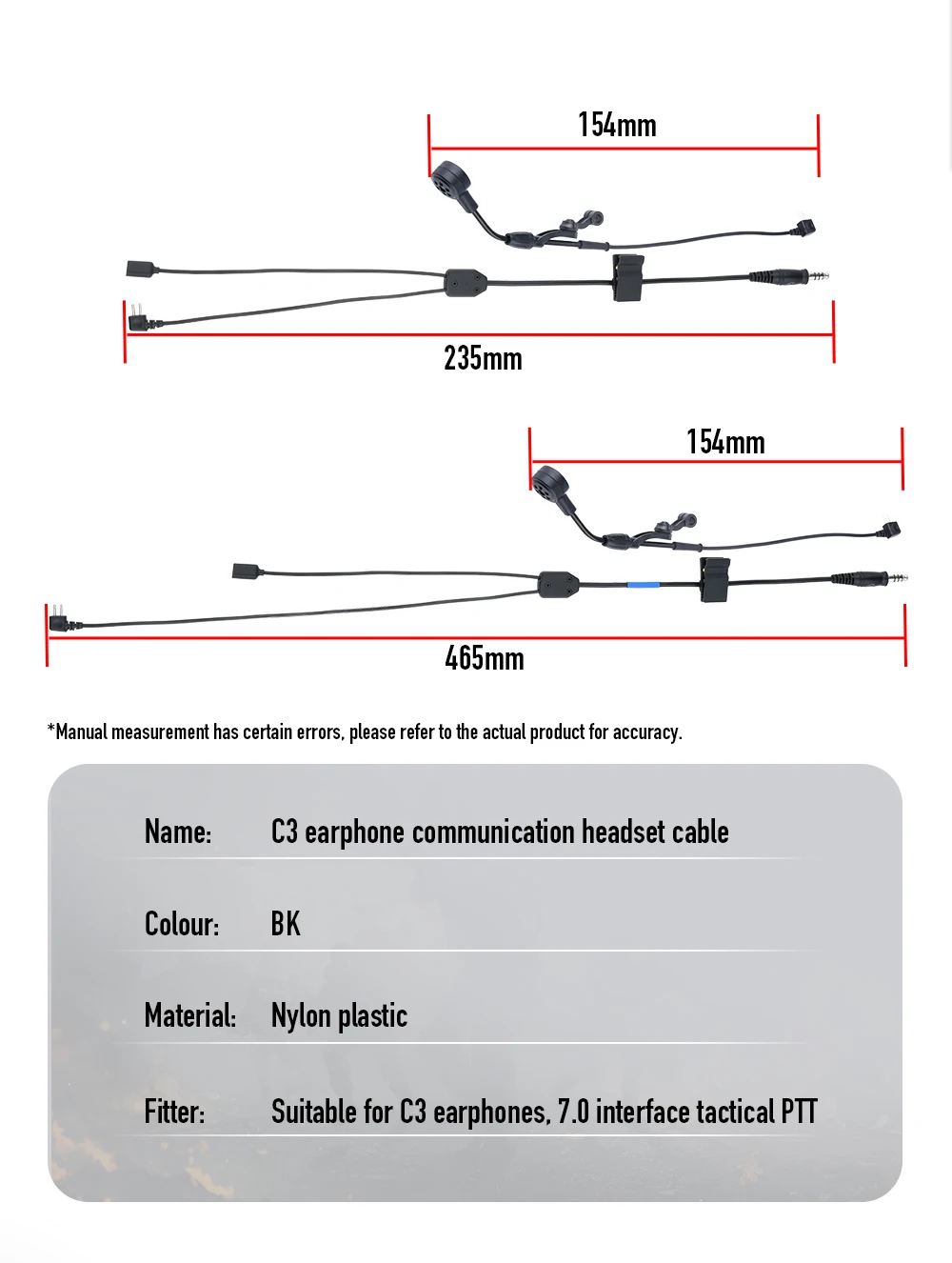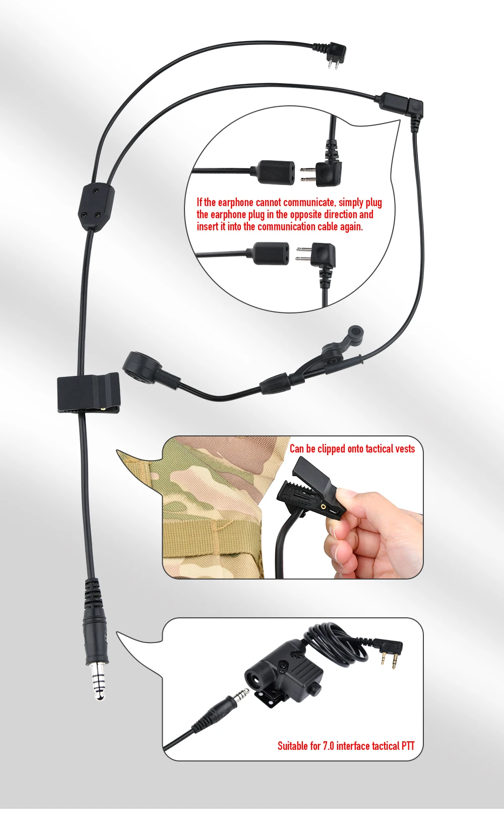 Táctico WC001 U94 PPT push to talk Cable de auriculares de comunicación para auriculares C3 versión inalámbrica interfaz 7,0 accesorios airsoft